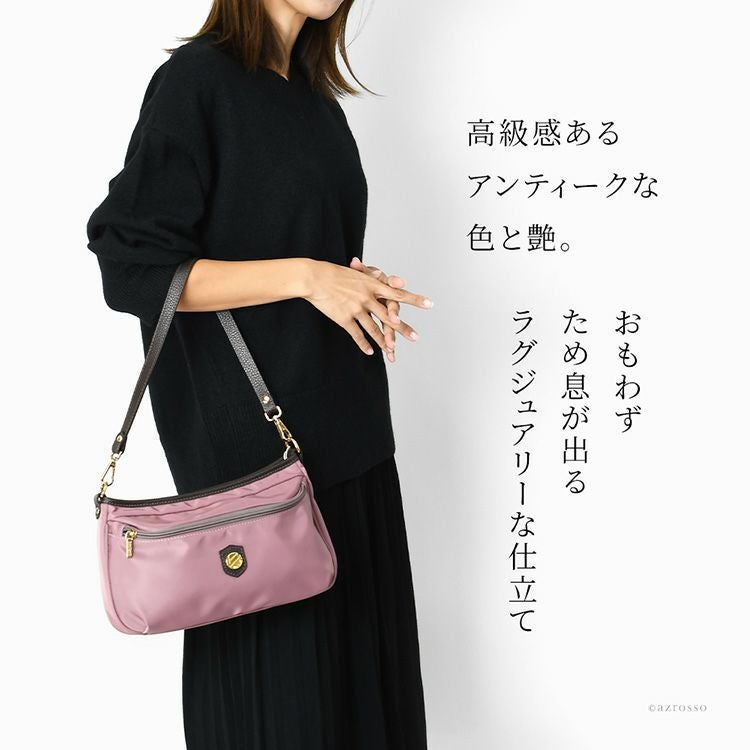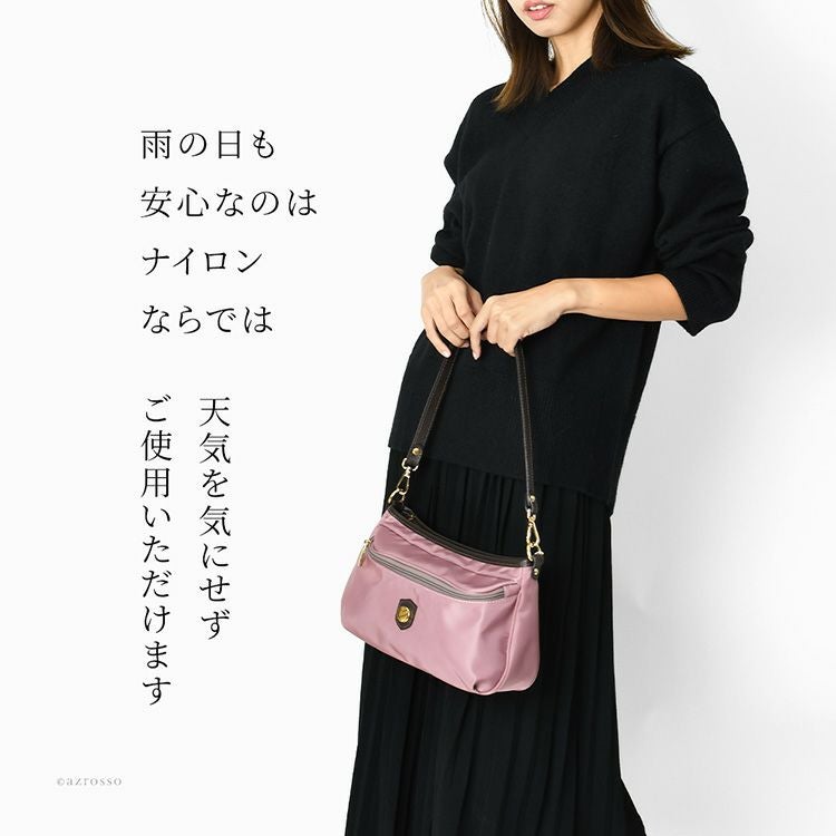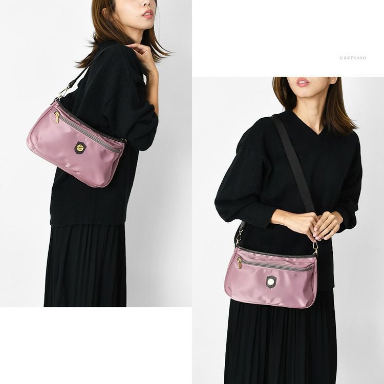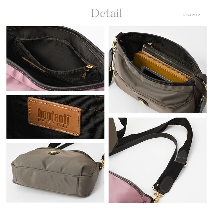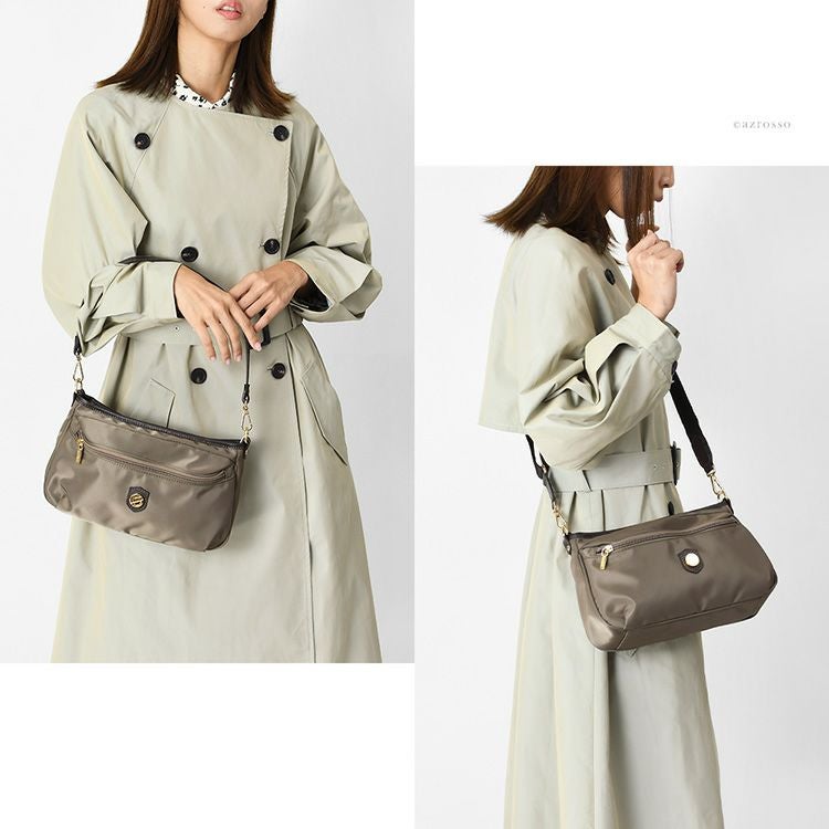 リュクスなイタリア製リモンタナイロンの小さめショルダーバッグ。立体的な外ポケットも魅力。普段使いにも旅行のサブバッグにも丁度良いサイズ。上質なナイロンショルダーを持ちませんか イタリア製 ショルダーバッグ レディース リモンタナイロン ミニショルダーバッグ 小さめ おしゃれ 斜めがけバッグ ブランド レザー 本革 2way
