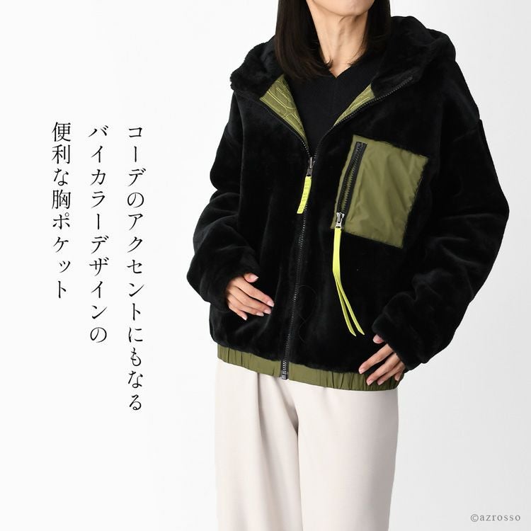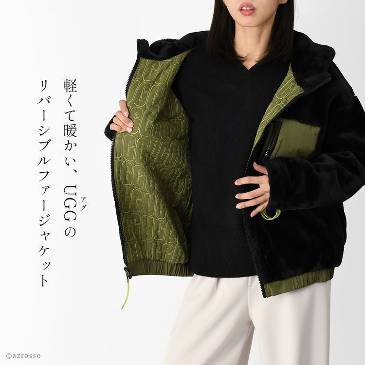 軽量で暖かいフェイクファーブルゾン UGG Kairo Faux Fur Jacket(アグ カイロ フォー ファー ジャケット)。ゆったりシルエットのリバーシブルフルジップアップパーカー フリース ジャケット レディース アウター ジップアップ パーカー ボア ブルゾン フーディ リバーシブル 軽量 ファーブルゾン 軽い KAIRO Faux Fur Jacket カイロ フォー ファー ジャケット 1119483