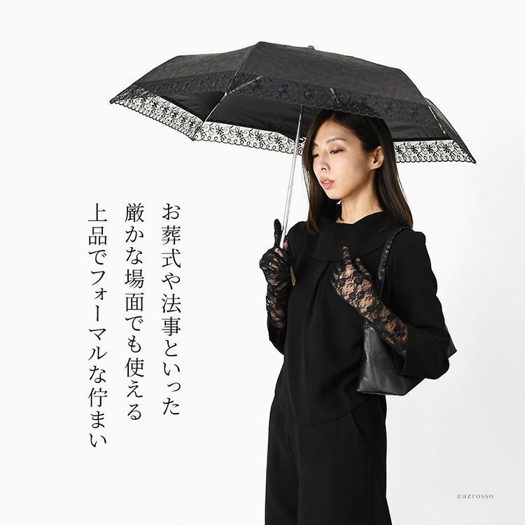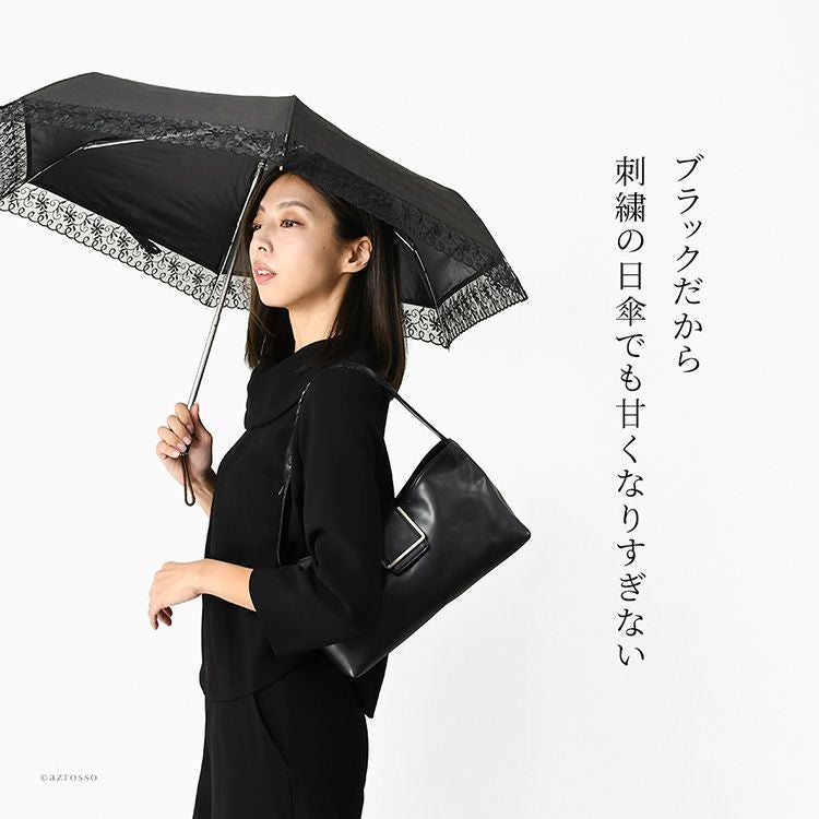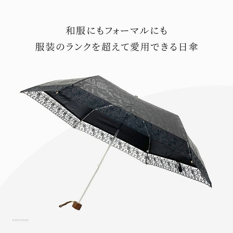 ブラックフォーマルに合わせやすい花柄×黒のシックで華やかな折りたたみ傘。コンパクトに持ち運べる上に晴雨兼用で、UVカット率は99%だから、夏の法事、お墓参りの際に日傘として日焼け予防、熱中症対策にも便利。 晴雨兼用 折りたたみ傘 日傘 UVカット 99% 遮光 軽量 雨傘 コンパクト レディース ブラック 花柄 折り畳み日傘 黒 刺繍
