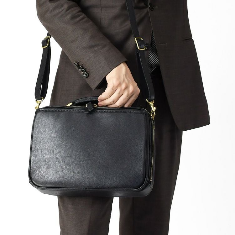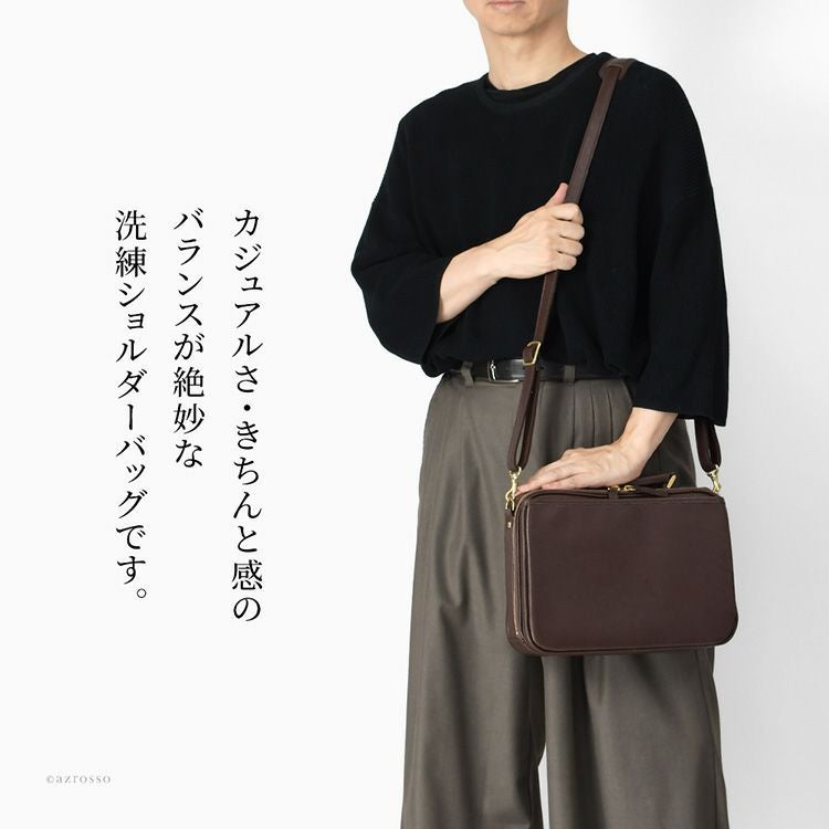 ボックス型デザインが上品で目を惹く、日本の老舗鞄ブランド「服部」の本革ショルダーバッグ。通勤・お出かけにシーン問わず使いやすいメンズバッグ メンズ 日本製 本革 ショルダーバッグ 2way 横型 ボックス型 ブラック ブラウン レザー ビジネスバッグ 服部 豊岡 鞄 通勤 斜め掛け 肩掛け