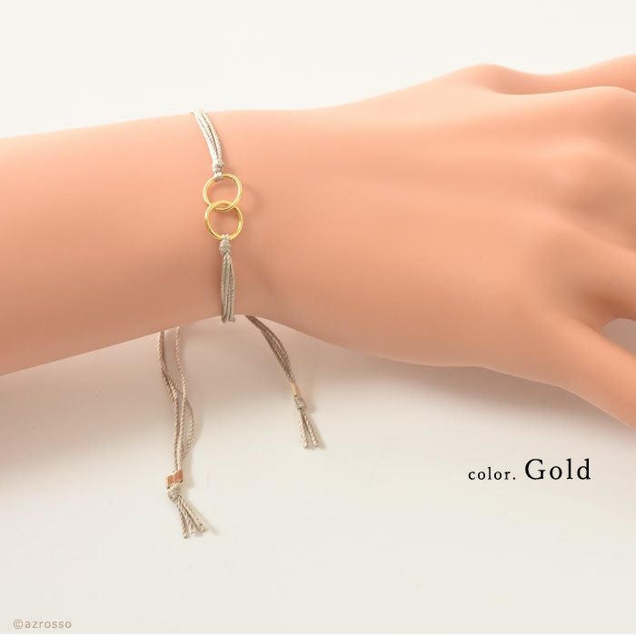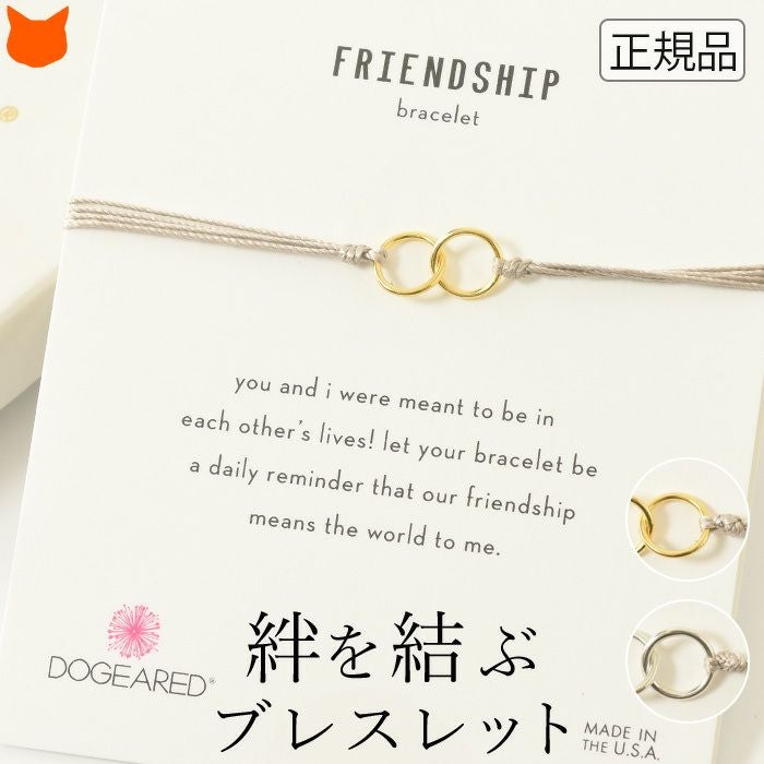 人気ジュエリーブランドDogeared(ドギャード)の絆を繋ぐダブルリングのブレスレット。ゴールドとシルバーのシンプルなアクセサリーは男性も女性も使えるユニセックスデザイン 誕生日プレゼントや記念日ギフトに/ 願いが叶う ブレスレット ゴールド シルバー ドギャード 華奢 アクセサリー フレンドシップ 友情 絆 シルク コード バングル シンプル【通常ネコポス配送】