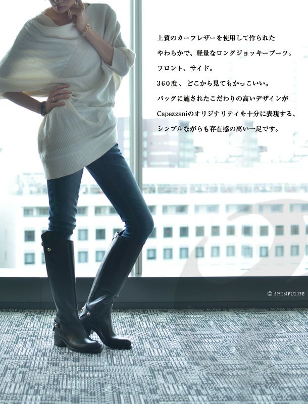 ※特価の為返品・キャンセル・交換無料サービス対応不可。※交換対応は、通常販売時のお買い物通りのご案内です。※サイズ交換希望で、ご交換希望サイズが欠品の場合は返品不可 23-25.5cm|5cmヒール イタリア製 ジョッキーブーツ 本革 ロングブーツ ブランド バックファスナー 筒回り ゆったり 黒 ブラック ブラウン 乗馬ブーツ