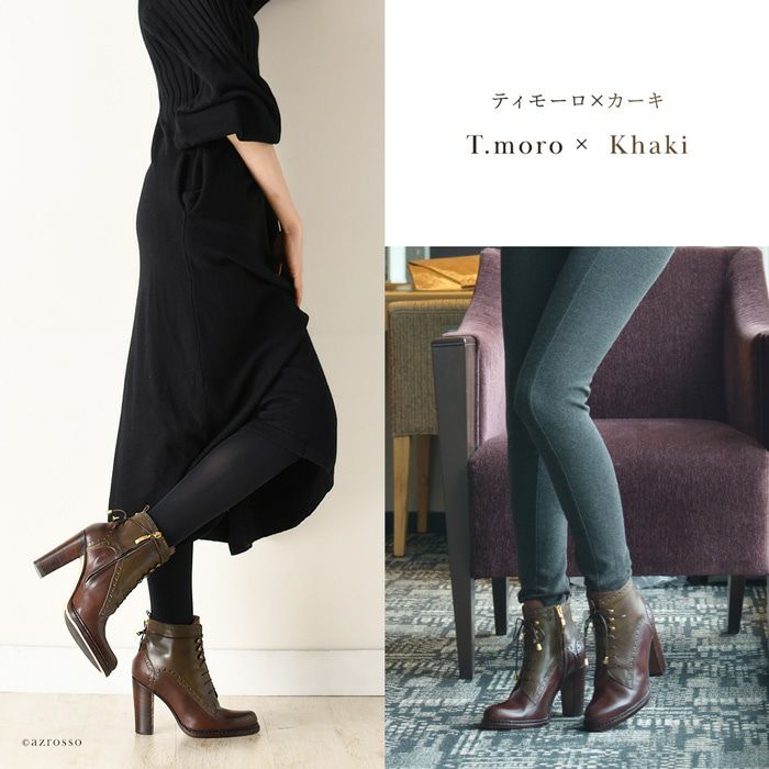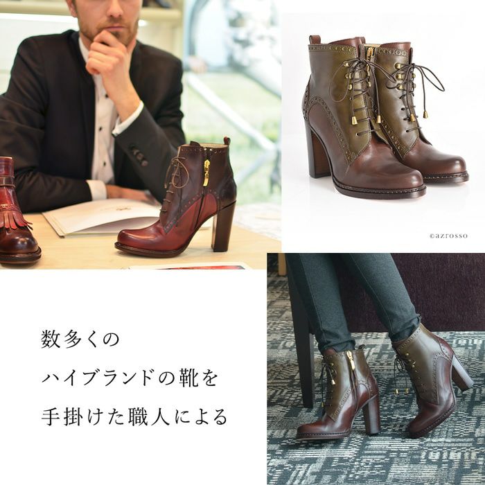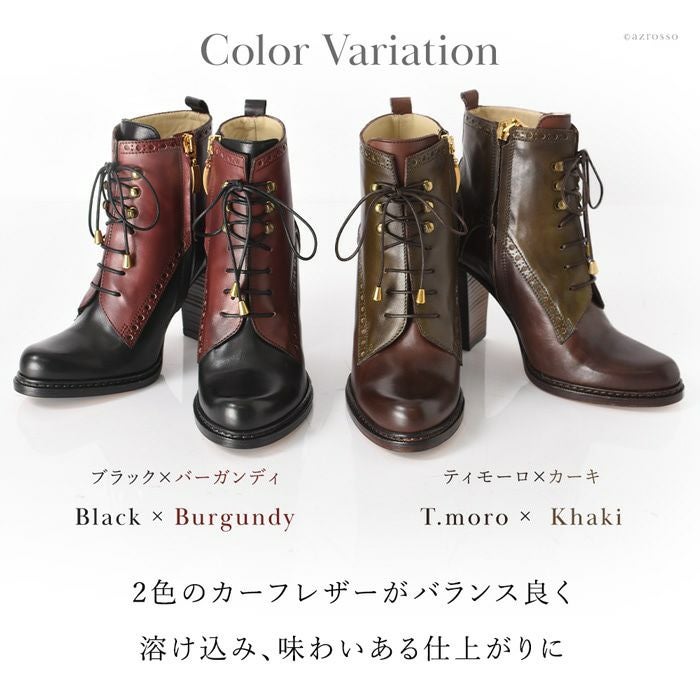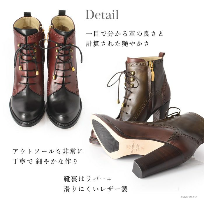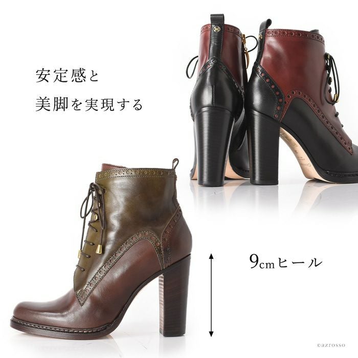 ※特価の為返品・キャンセル・交換無料サービス対応不可。※交換対応は、通常販売時のお買い物通りのご案内です。※サイズ交換希望で、ご交換希望サイズが欠品の場合は返品不可 22-24.5cm|9cmヒール イタリア製 サイドジップ レースアップブーツ 太ヒール ショートブーツ ブランド オックスフォード 黒 ブラック ブラウン