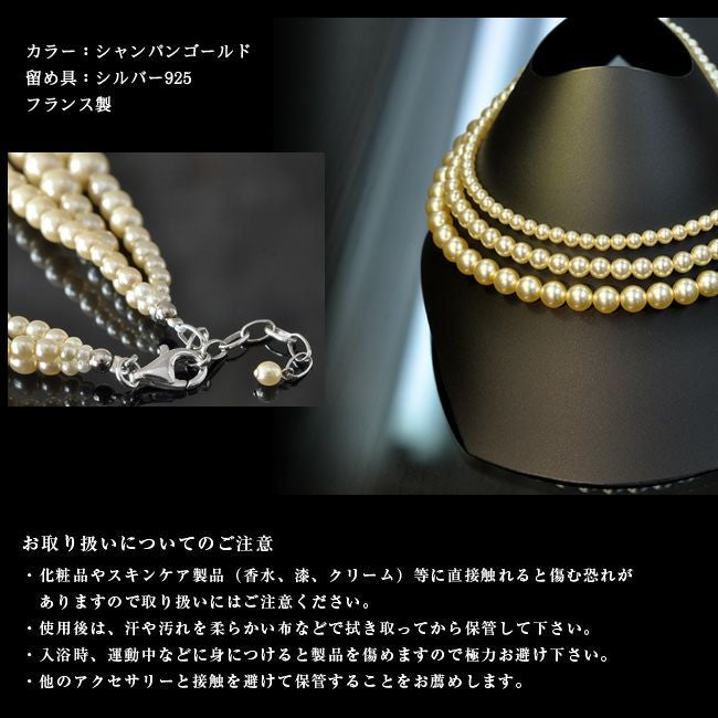 フランス女優達を魅了したパールネックレス 三連 シャネルやディオールのクチュールパールと同じパール シャンパンゴールド シルバー925 結婚式 入卒式 入園式 パーティ 女性 彼女 恋人へのプレゼントに/ フランス製 3連パールネックレス パールドコタラッテ