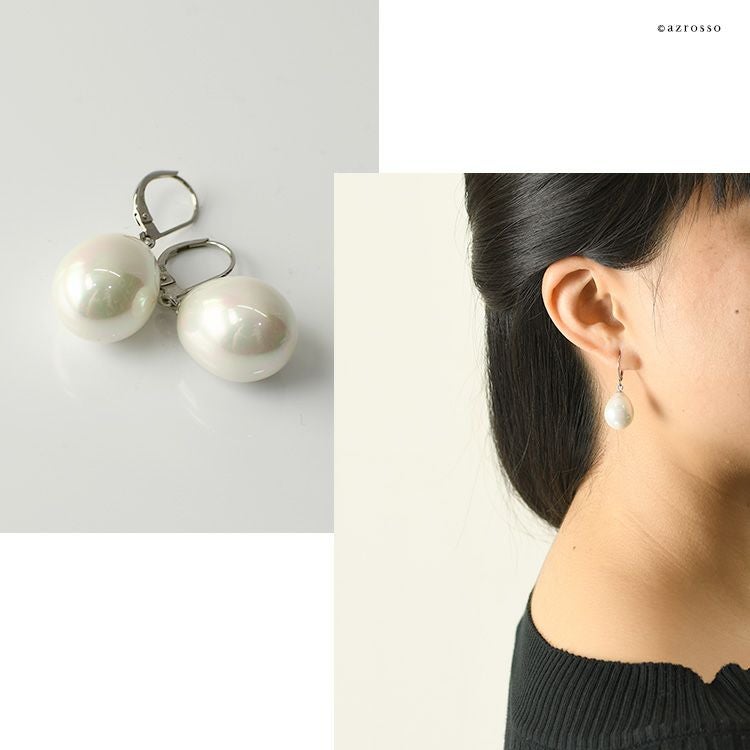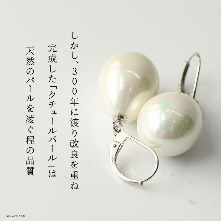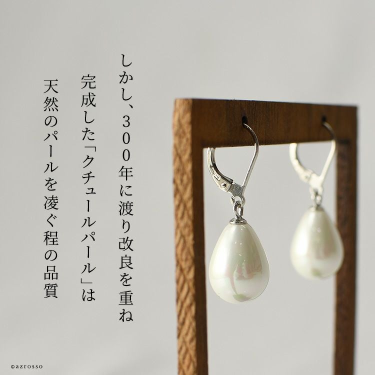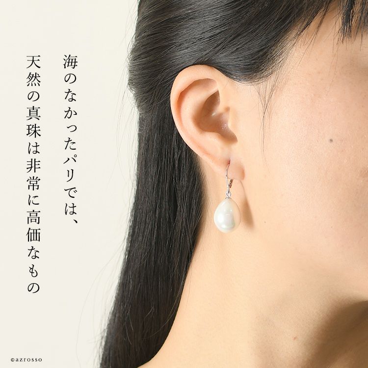 ゆらゆら揺れるティアドロップ(涙型)パール Perles de Cotalatte(パールドコタラッテ)のクチュールパールピアス。シンプルな一粒ピアスは結婚式 フォーマルシーンは勿論ビジネスコーデ(通勤 お仕事)にぴったり 一粒 パールピアス 大粒 18mm 耳にしっかり固定できて落としにくいバネ式ピアス フランス製 真珠 ホワイト