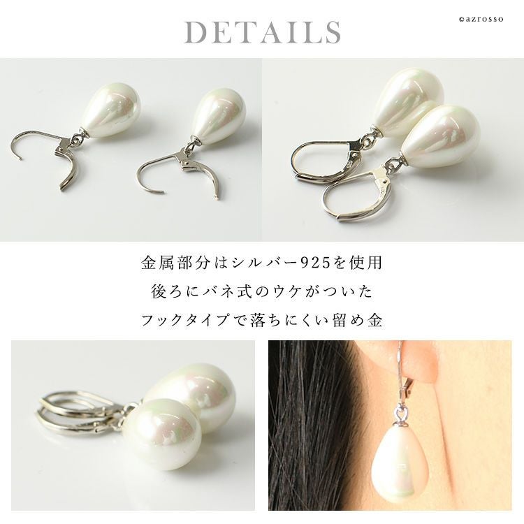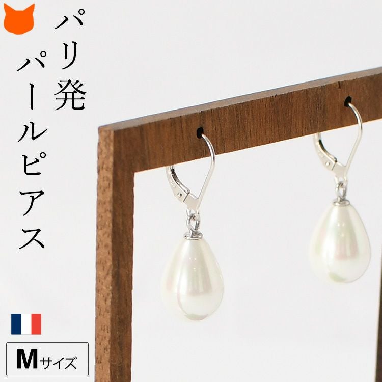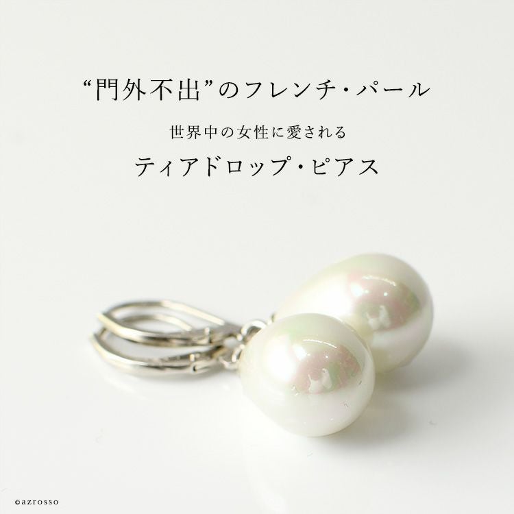 ゆらゆら揺れるティアドロップ(涙型)パール Perles de Cotalatte(パールドコタラッテ)のクチュールパールピアス。シンプルな一粒ピアスは結婚式 フォーマルシーンは勿論ビジネスコーデ(通勤 お仕事)にぴったり 一粒 パールピアス 大粒 14mm 耳にしっかり固定できて落としにくいバネ式ピアス フランス製 真珠 ホワイト