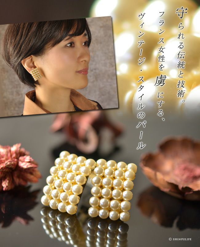 シャネルやディオールも使用する、クチュールパールのトップ品質 パール/イヤリング/シリコン/フランス/通販/パーティ、ブライダル、結婚式にもおすすめ フランス製 パールイヤリング スクエアタイプ ノンホールピアス 映画「真珠の耳飾りの少女」にパールを提供
