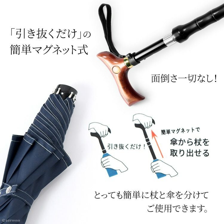 「贈られて最も嬉しい贈り物」傘をさしながら杖も使えるステッキ傘。お母さん お父さん 義理の母親 義理の父親 おじいちゃん おばあちゃんへの母の日 父の日 敬老の日 還暦のプレゼントに 日本製 つえ傘 杖にもなる晴雨兼用傘 簡単マグネット式 ステッキ傘 ステッキインアンブレラ 丈夫 軽量 男女兼用 UVION DuetWalker デュエットウォーカー