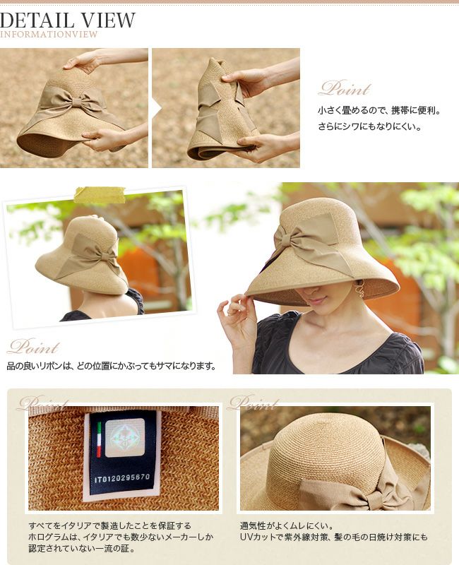 世界一の帽子の街からの贈り物/夏の日よけ帽子に上質なイタリア製を/折りたたみで収納に便利/ つば広/13cm/uvカット/ペーパーハット/ハット/女優帽/麦わら帽子/ブランド/レディース/ VECCHI[ヴェッキ] カプリーヌハット/ガルボハット/リボン/世界一の帽子の街からの贈り物/夏の日よけ帽子に上質なイタリア製を/折りたたみで収納に便利/つば広/13cm/uvカット/ペーパーハット/ハット/女優帽/麦わら帽子/レディース