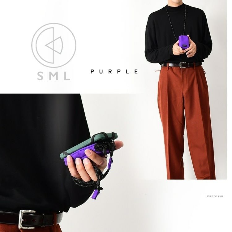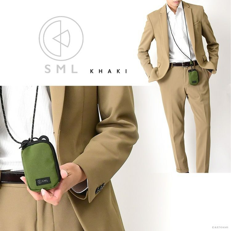 日本の鞄ブランドSMLのメンズミニポーチ。旅行やスポーツで首にかけて使えるシンプルなデザインのコインケースです。 スマホポーチ コインケース ナイロン メンズ ミニ バッグ スマホ 持ち歩き ウォーキング ネックストラップ ファスナー SML ブラック オレンジ イエロー パープル ネイビー カーキ ミニポーチ 旅行 アウトドア【通常ネコポス配送】