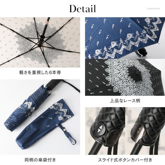 バーン!と裏返しになってもワンタッチで元通り。台風・強風に強い自動開閉傘 UVION Karuclose(ユビオン カルクローズ)。大判98cm、軽量の上、安心・安全機能付きの折り畳み傘。雨傘・日傘として使える晴雨兼用 自動開閉 折りたたみ傘 レース柄 耐風 傘 雨傘 晴雨兼用 日傘 レディース ブラック ネイビー アイボリー ホワイト UVION Karuclose ユビオン カルクローズ