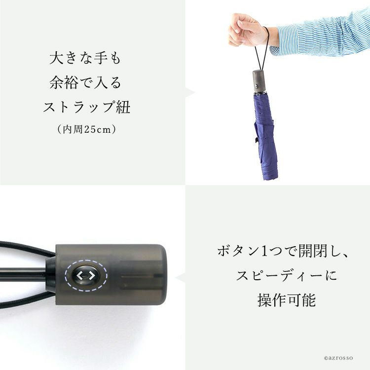 超軽量の折り畳み傘と比べると、少し重いですが、ワンタッチで、開いて閉まる、自動開閉式の折りたたみ傘は、一度知ってしまうと病みつきになります。 ビジネスマンや、主婦に限らず、片手がふさがっている場面って、両手が自由なことよりはるかに多い気がします。 そんな時に自動開閉の傘は、ワンタッチで開閉しますので、助かります。 手にした直後は無駄に開閉ボタンを押したくなるはずです。