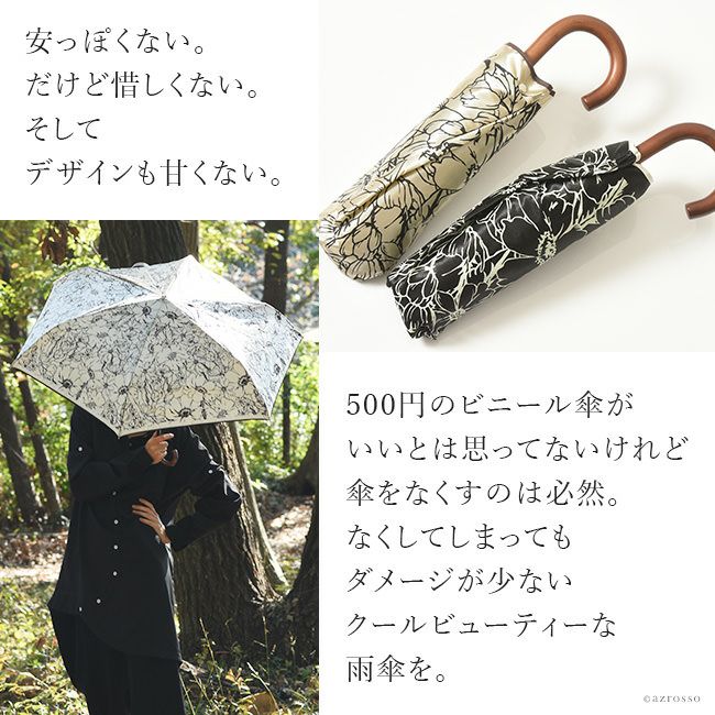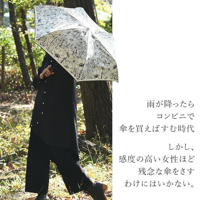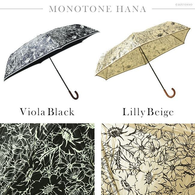 モノトーンハナ 折りたたみ傘 大判 レディース 女性用 簡単 開閉 丈夫 サテン生地 おしゃれでスタイリッシュな雨傘はプレゼントにもおすすめ