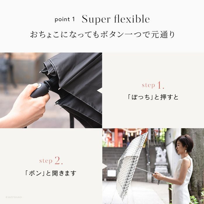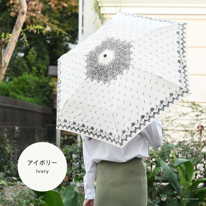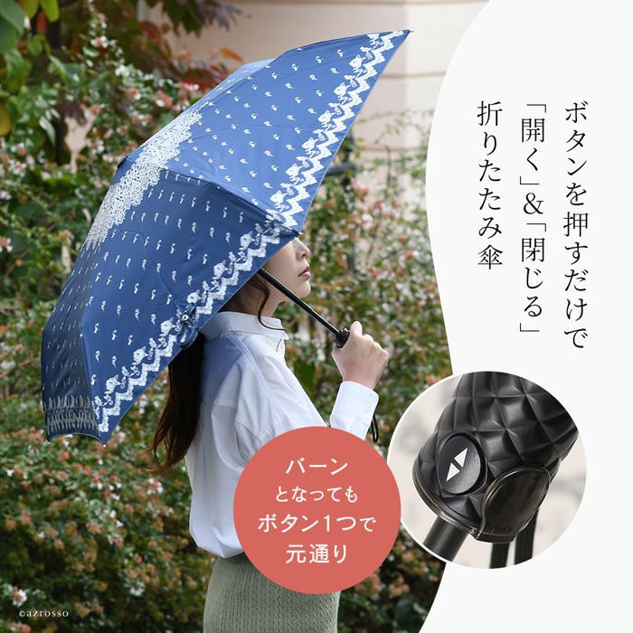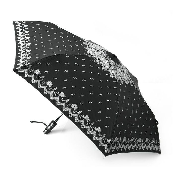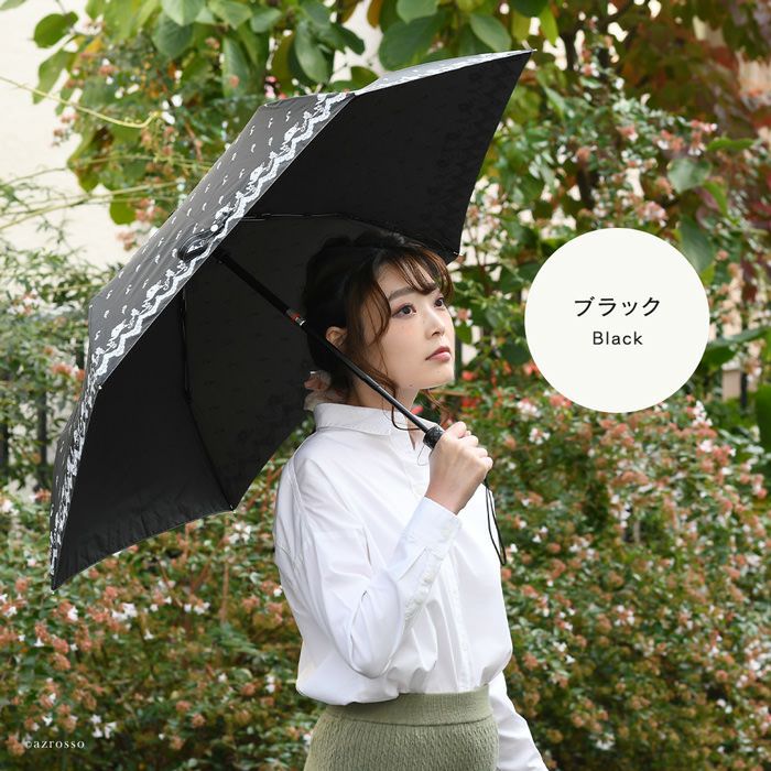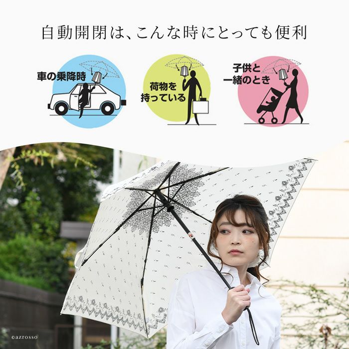 自動開閉 折りたたみ傘 レース柄 耐風 傘 雨傘 晴雨兼用 日傘 レディース ブラック ネイビー アイボリー ホワイト UVION Karuclose ユビオン カルクローズ