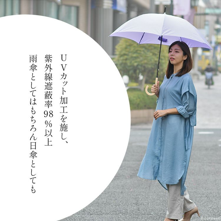 ▼特徴:雨傘|日傘|晴雨兼用傘|長傘|大判|軽量|軽い|安心|安全|丈夫|耐風|UVカット|紫外線遮蔽率98%|サスティナブル