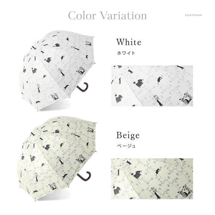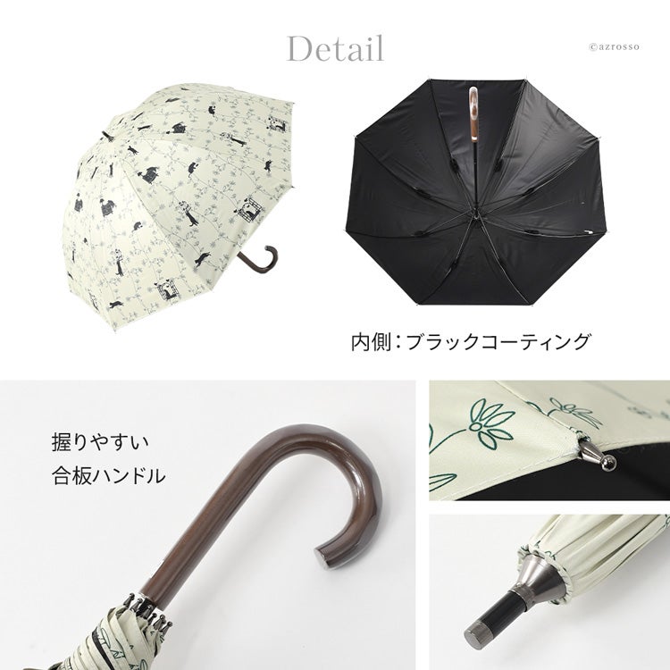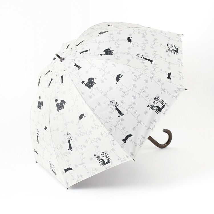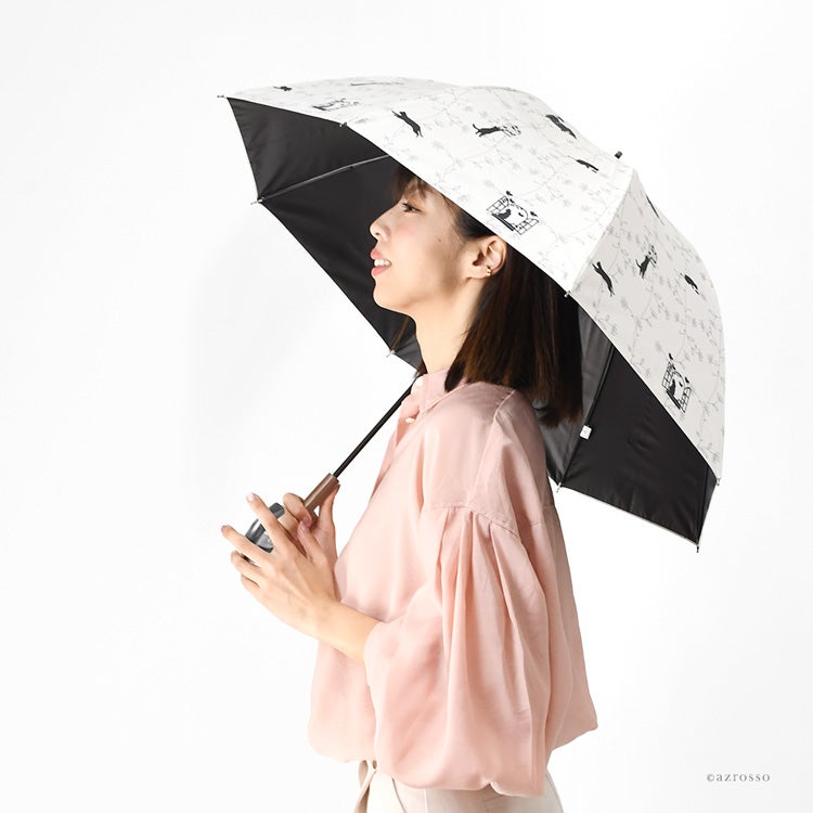 ▼特徴:ネコ柄 アニマル柄 コンパクト おしゃれ 上品 エレガント 洗練 安全ロクロ 丈夫 タフ 折れにくい 紫外線対策 猛暑対策 日よけ リーズナブル