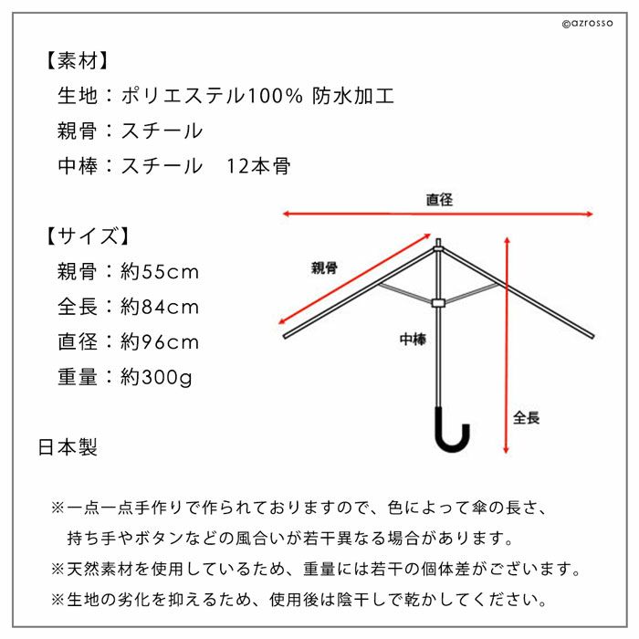 ※一点一点手作りで作られておりますので、色によって傘の長さ、持ち手やボタンなどの風合いが若干異なる場合があります。