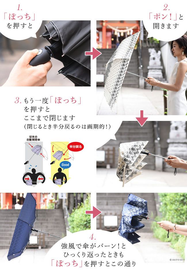 強風で傘がバーン!となっても、ボタン1つでも度通りになる!