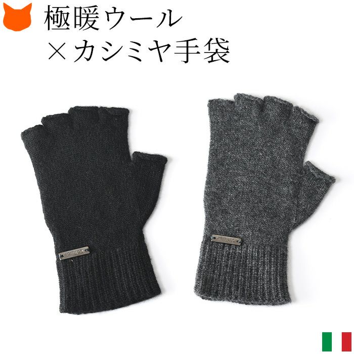 イタリア製 ハンドウォーマー 手袋 メリノウール カシミヤ フィンガーレス グローブ ブランド Calimar カリマール 黒 ブラック グレー