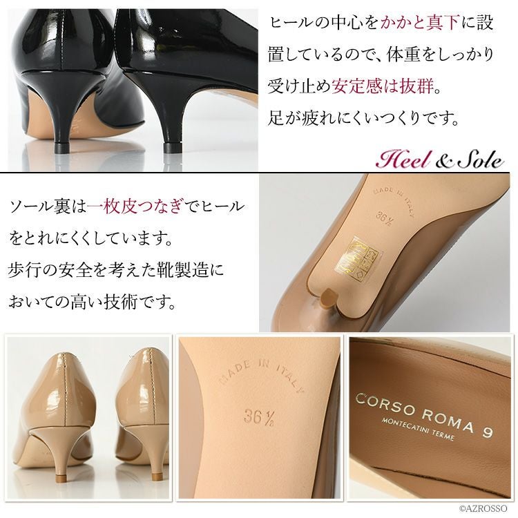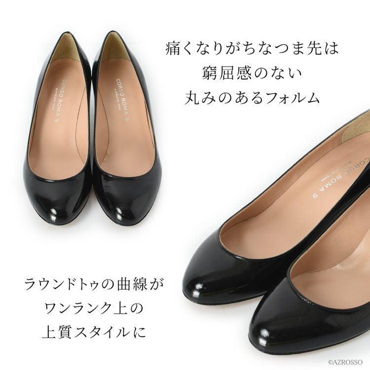 イタリア製 エナメルパンプス ラウンドトゥ 本革 ヒール 4cm コルソローマ パンプス corso roma 9 ブランド ローヒール ビジネス 仕事 上質 パンプス