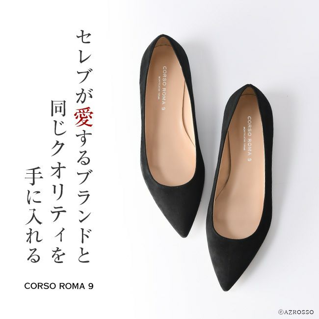 23cm-25.5cm│ローヒール スエード ポインテッドトゥ パンプス 本革 ヒール 1.5cm コルソローマ 9 CORSO ROMA 9 レッド ネイビー