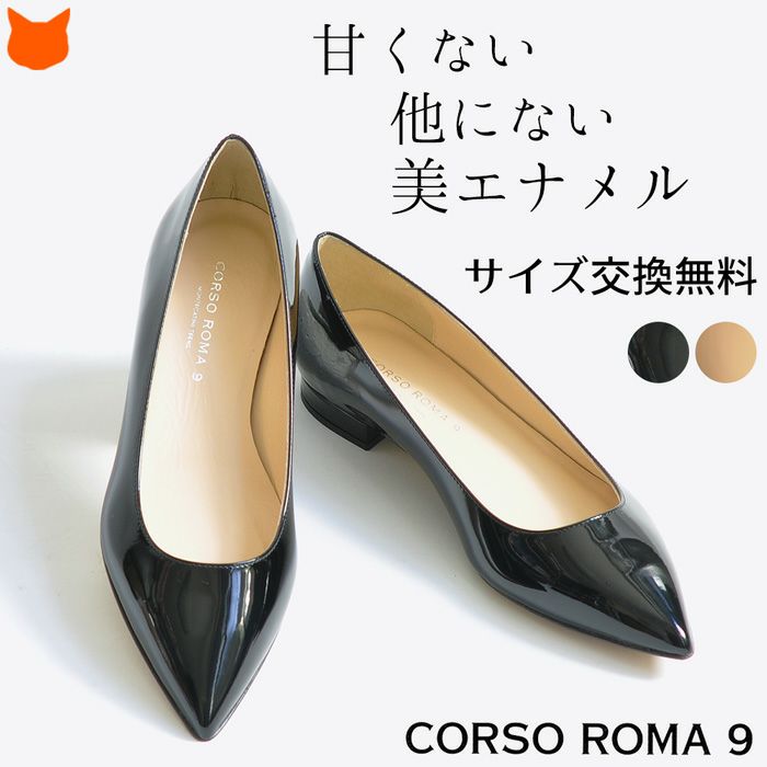 5. 23cm-25.5cm│ローヒール エナメル ポインテッドトゥ パンプス 本革 ローヒール 1.5cm コルソローマ 9 CORSO ROMA 9