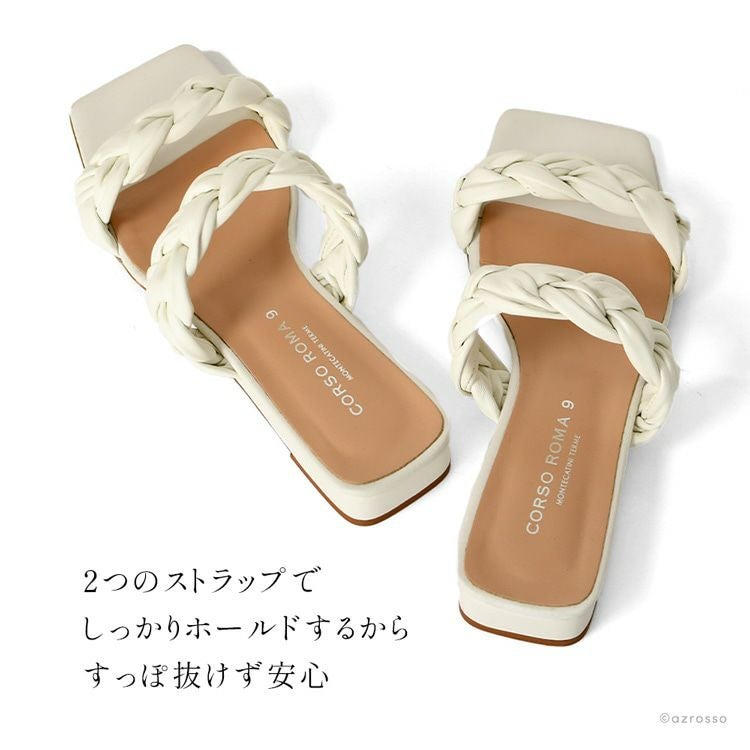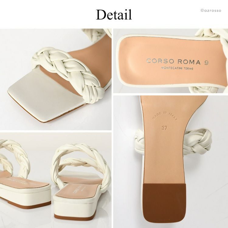 コルソローマ サンダル 編み込み ミュール サンダル フラット ぺたんこ 靴 本革 ダブルベルト レザー イタリア製 ブランド CORSO ROMA 9 コルソローマ9