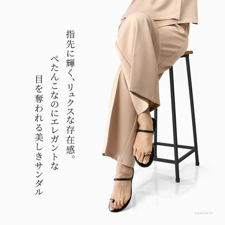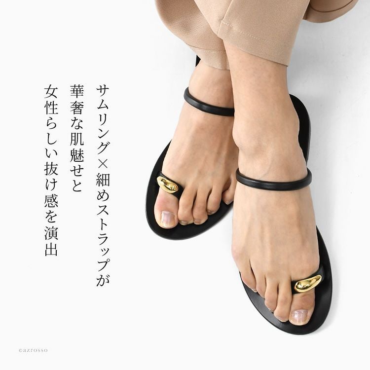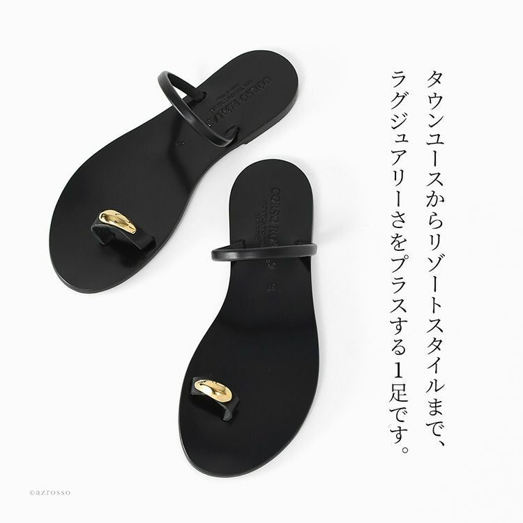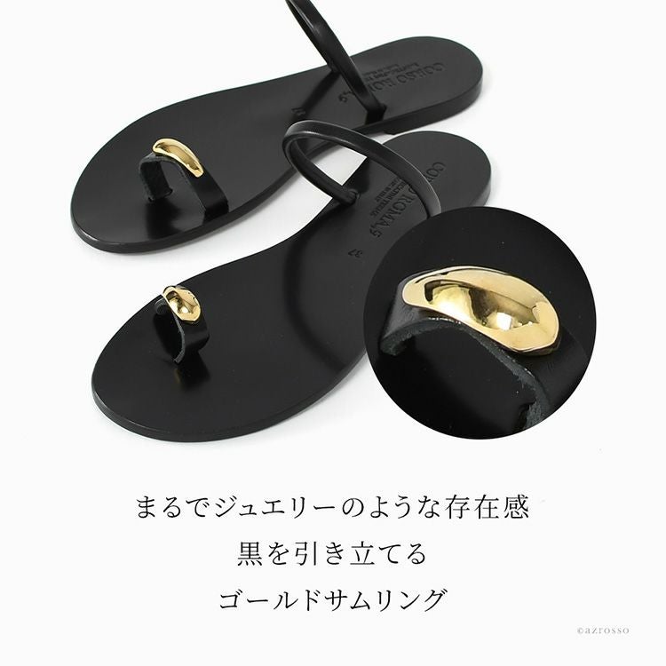 イタリア製 サムリングサンダル レディース ブラック ゴールドリング 軽量 ミュール 夏 フラットサンダル 本革 つっかけ トングサンダル