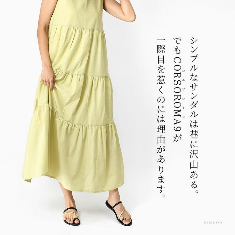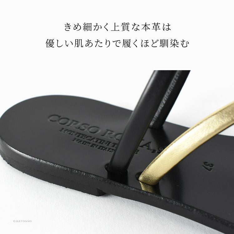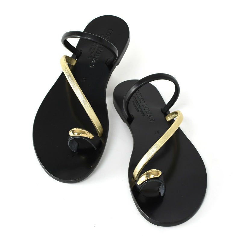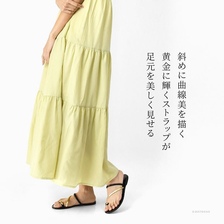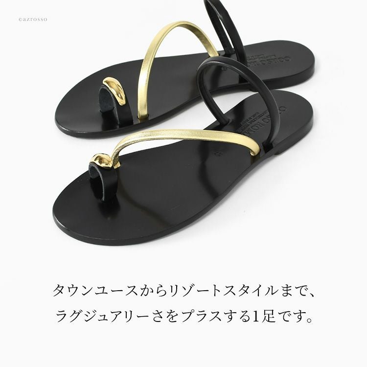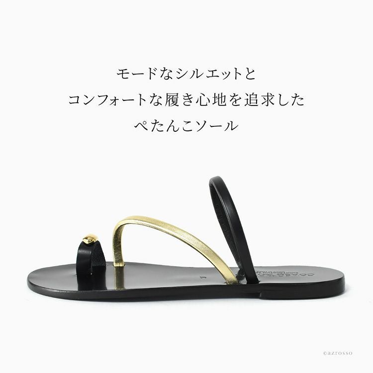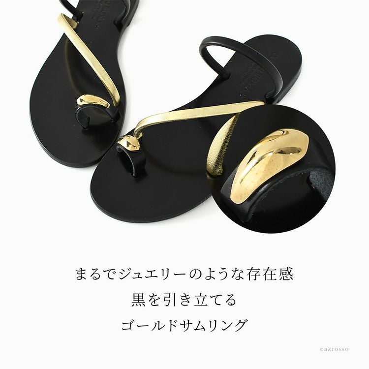 イタリア製 サムリングサンダル レディース ゴールドストラップ ブラック 親指 リング 軽量 夏 フラットサンダル 本革 つっかけ トングサンダル