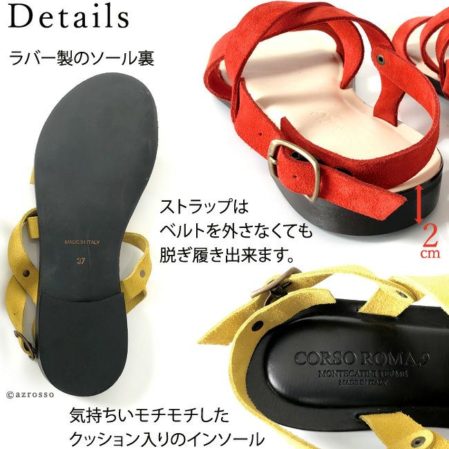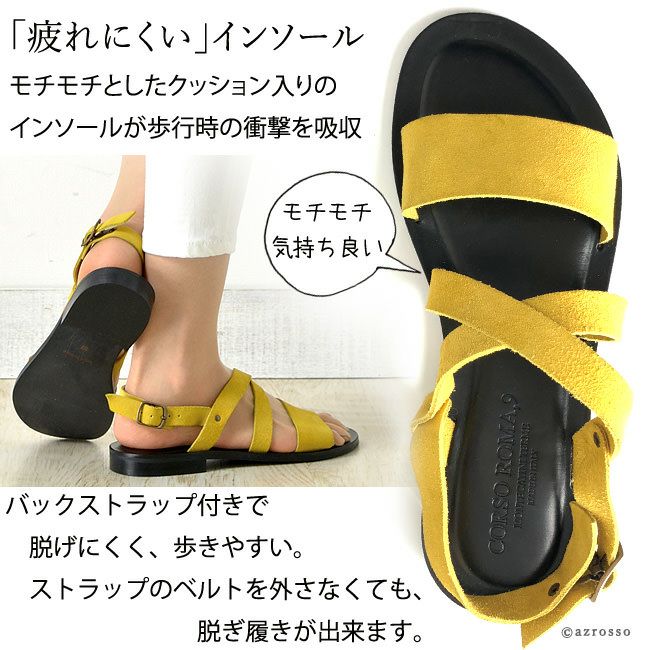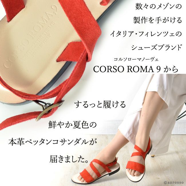コルソローマ サンダル スエード CORSO ROMA 9 レディース バックストラップ ペッタンコ フラットヒール レッド 赤 オレンジ ベージュ ホワイト 白 イエロー ブラック 黒 本革 大きい サイズ 25cm 夏