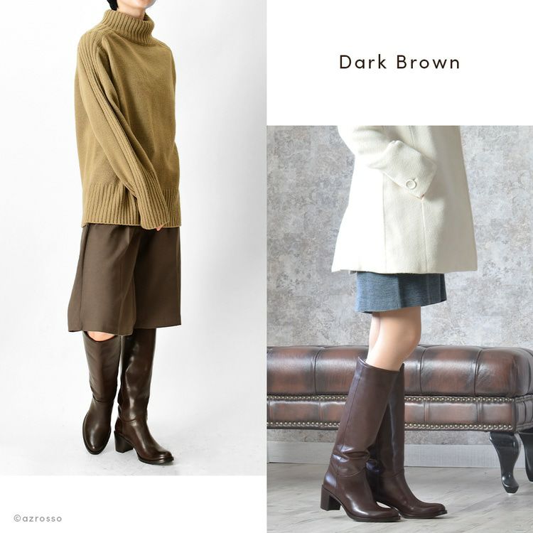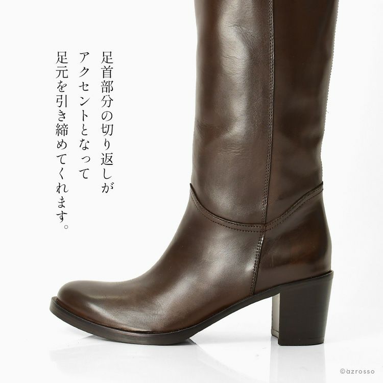 22-25.5cm|6cmヒール イタリア製 ロングブーツ 太ヒール ジョッキーブーツ ブランド チャンキーヒール 細身 黒 ブラック ブラウン