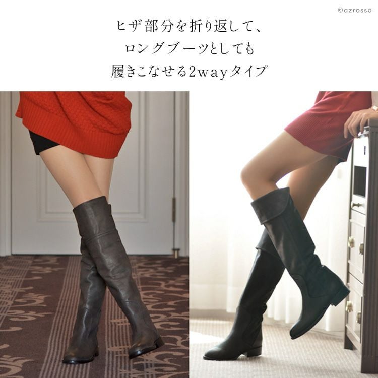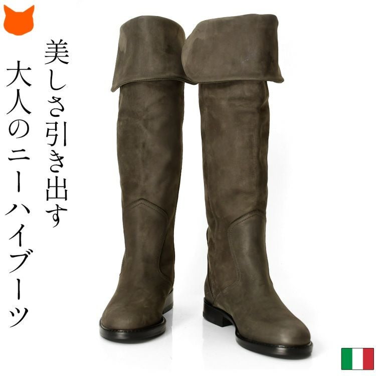 残り23cmのみ|3cmヒール 2way ロングブーツ スエード ニーハイブーツ イタリア製 ブランド コルソローマ 黒 ブラック グレー