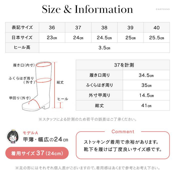 コメント:ストッキング着用で余裕があります。靴下を履けば丁度良いサイズ感です。