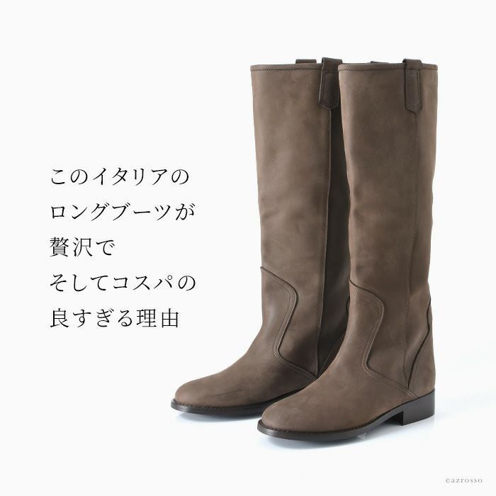 ※特価の為返品・キャンセル・交換無料サービス対応不可。※交換対応は、通常販売時のお買い物通りのご案内です。※サイズ交換希望で、ご交換希望サイズが欠品の場合は返品不可 【23cmのみ】23-25.5cm|ヒール3.5cm ヌバックレザー ロングブーツ イタリア製 ジョッキーブーツ コルソローマ 細身 イタリア製 細身 グレー ダーク ブラウン カーキ ブラック 黒 大きいサイズ 25㎝