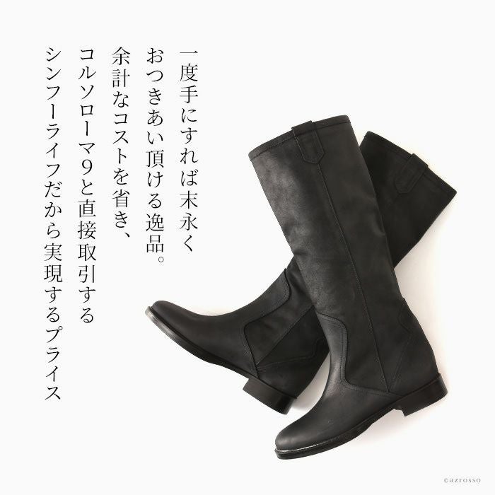 ※特価の為返品・キャンセル・交換無料サービス対応不可。※交換対応は、通常販売時のお買い物通りのご案内です。※サイズ交換希望で、ご交換希望サイズが欠品の場合は返品不可 23-25.5cm|バックベルト&ファスナーデザイン ロングブーツ ジョッキーブーツ イタリア製 ブランド コルソローマ9 CORSO ROMA 9 ローヒール ブラウン ブラック 黒