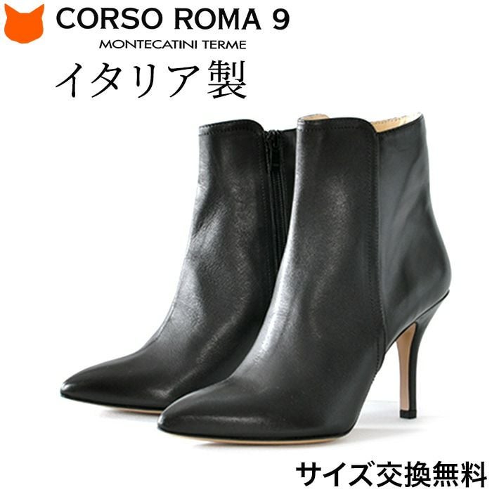 ※特価の為返品・キャンセル・交換無料サービス対応不可。※交換対応は、通常販売時のお買い物通りのご案内です。※サイズ交換希望で、ご交換希望サイズが欠品の場合は返品不可 23-25.5cm|3cmヒール ミドルブーツ レザーブーツ イタリア製 ブランド コルソローマ9 CORSO ROMA 9 ローヒール 黒 ブラック ブラウン