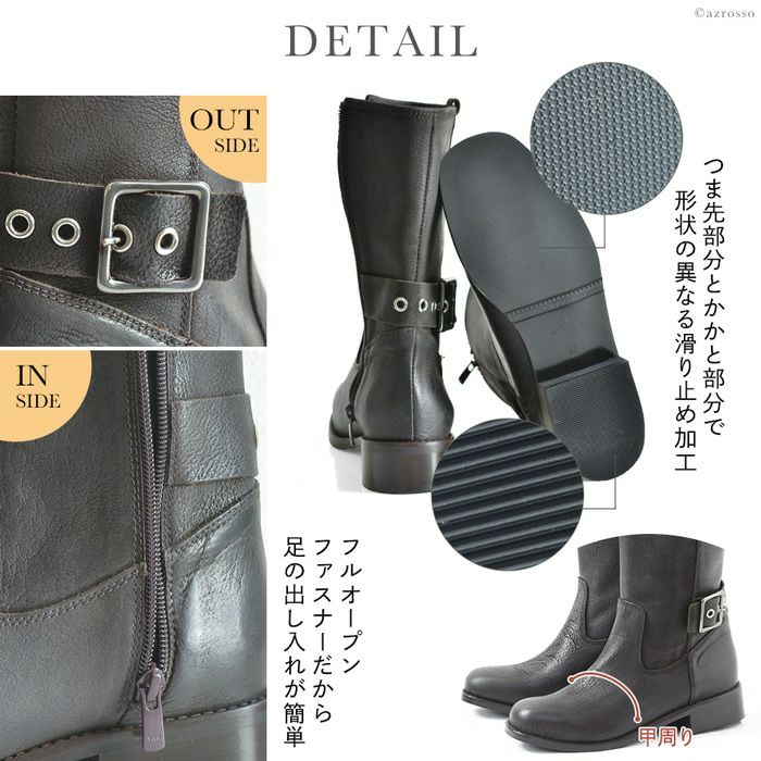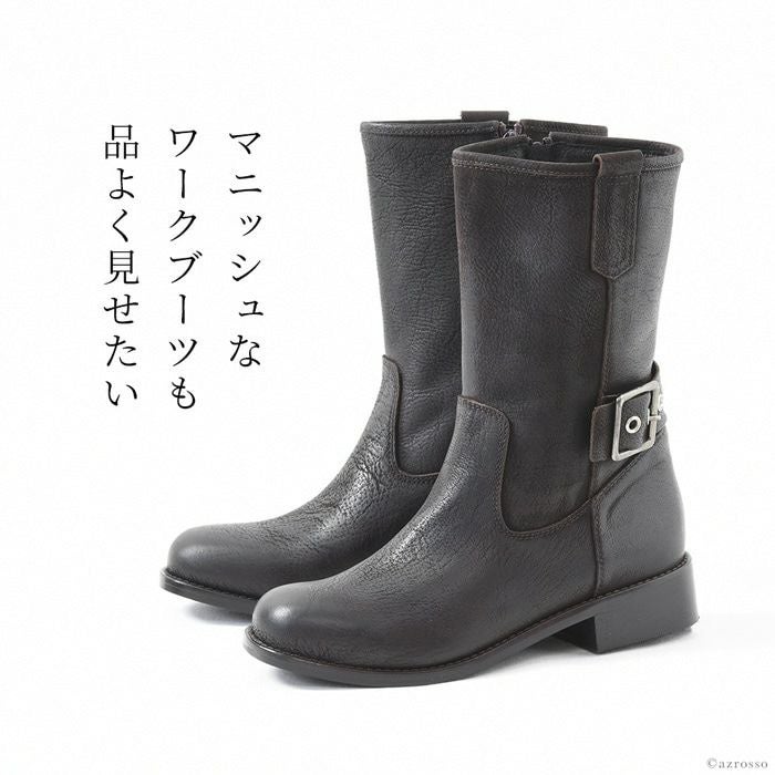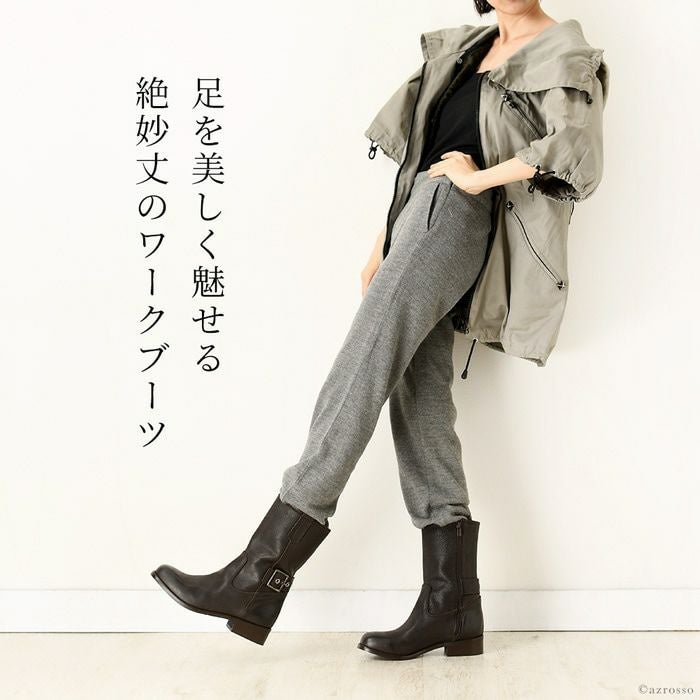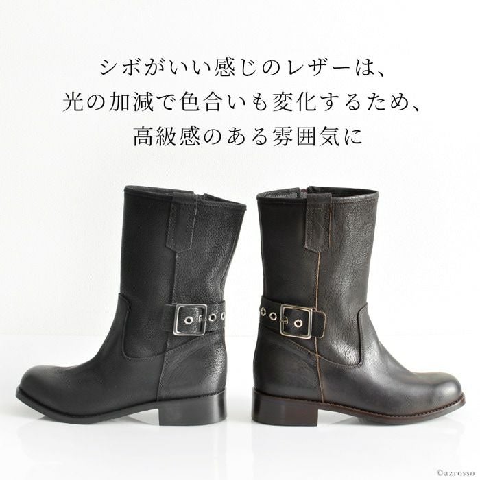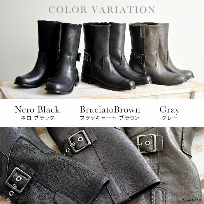 柔らかいレザーだから痛くない。ベルトデザインがかっこいいイタリアのレザーブーツ 23-25.5cm|ヒール3.5cm エンジニアブーツ 本革レザー ショートブーツ ゴツめ イタリア製 ブランド コルソローマ9 CORSO ROMA 9 黒 ブラック ブラウン グレー