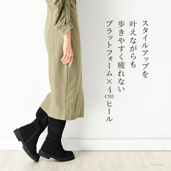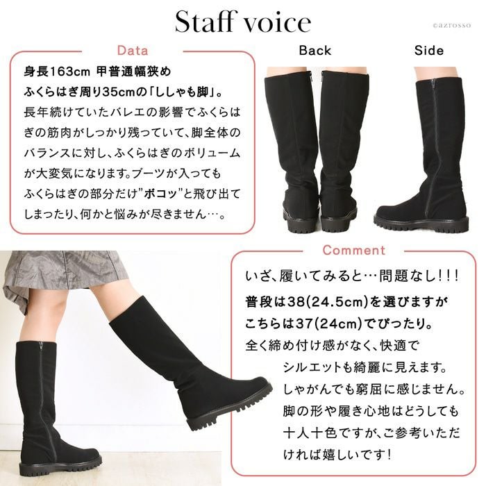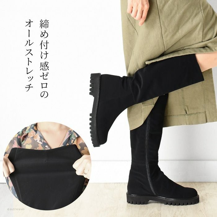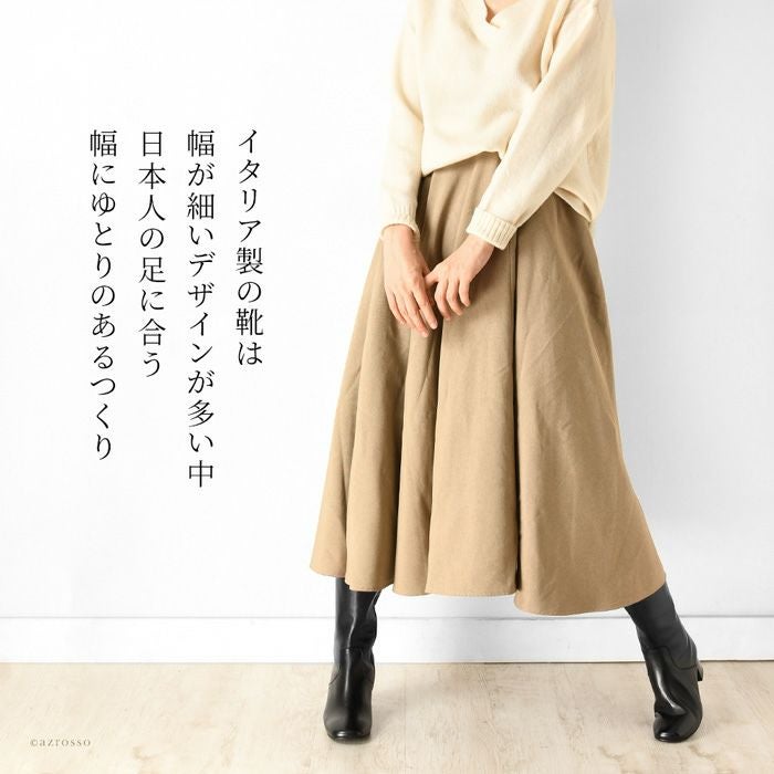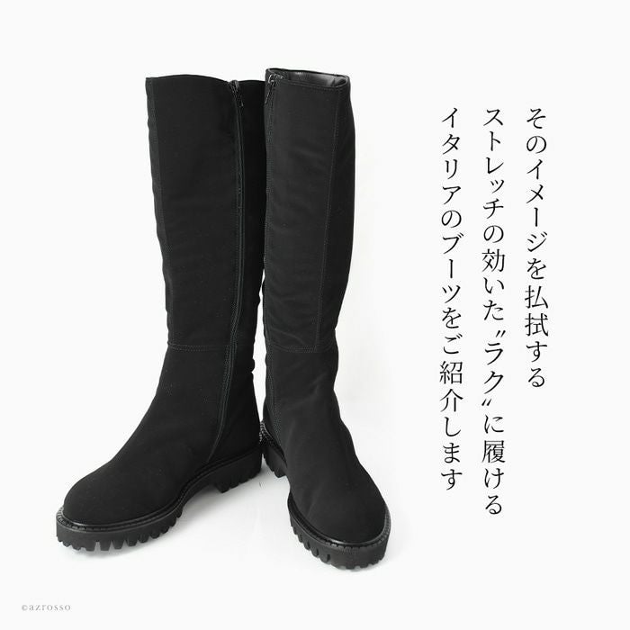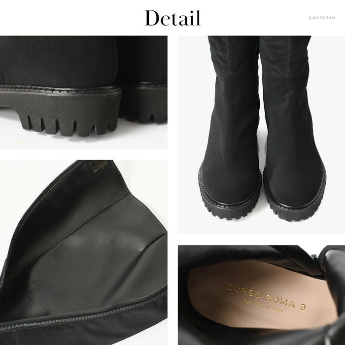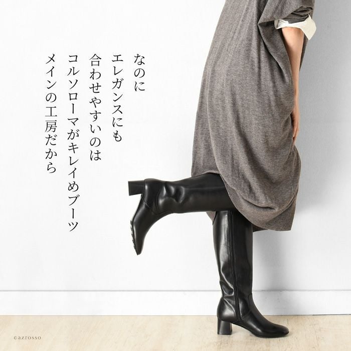 ストレッチ性抜群だから、ふくらはぎが苦しくない、CORSO ROMA 9(コルソローマ)のロングブーツ。太さが気になる人でもすっぽり入る。締め付け感ゼロで長時間の履いても疲れない 23cm-25.5cm│ストレッチ ロングブーツ 3.5cm ローヒール ブーツ イタリア製 ブランド CORSO ROMA 9 コルソローマ ノーヴェ 黒 ブラック