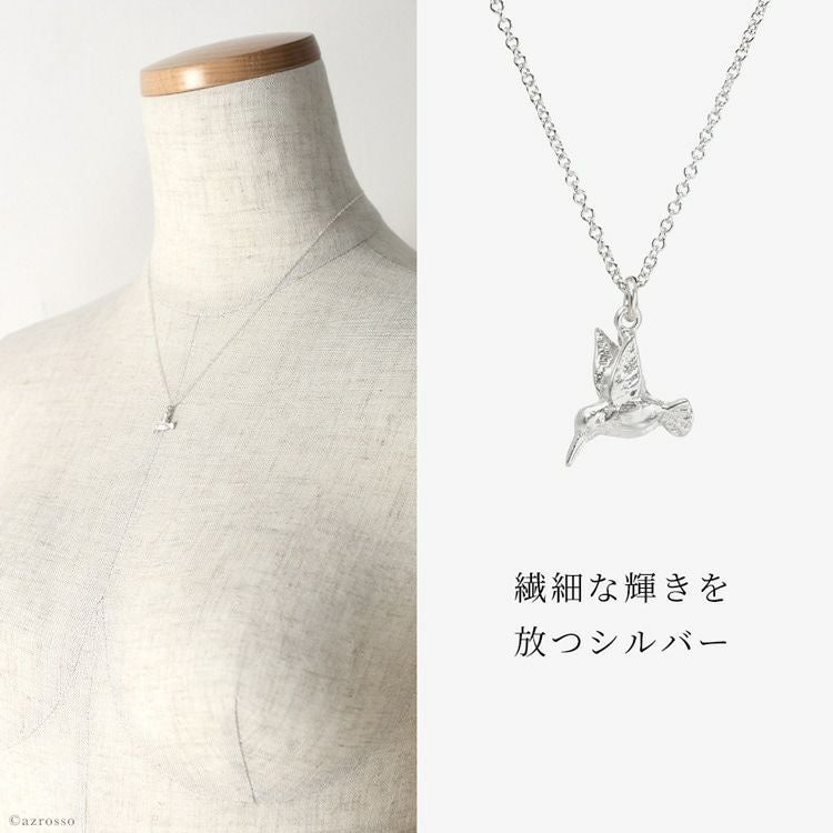 ハチドリ ネックレス 小鳥 モチーフ 小さい シルバー アクセサリー シルバー925 小ぶり ペンダント アジャスター付き ハミングバード 小さめ シンプル ジュエリー【通常ネコポス配送】