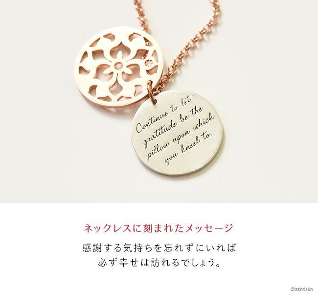 「感謝」はあなただけでなく周りをも幸せにする魔法。日々の暮らしの中で大切な気持ちをこのネックレスは思い出させてくれます。
