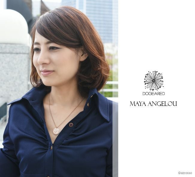 透かし彫りのチャームをスライドさせれば、マヤ アンジェロウの名言が刻まれたプレートが現れます。