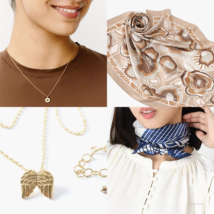 ▼特徴:お守り感覚で毎日身に着けられるパワージュエリーセット シンプル 上品 LA発 ペンダント 上質 日本製 スカーフ 2点セット
