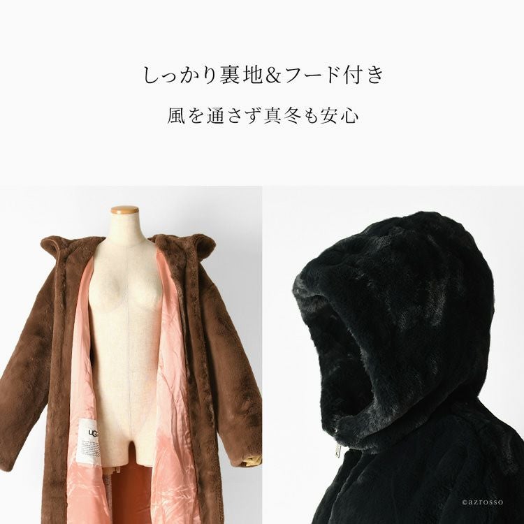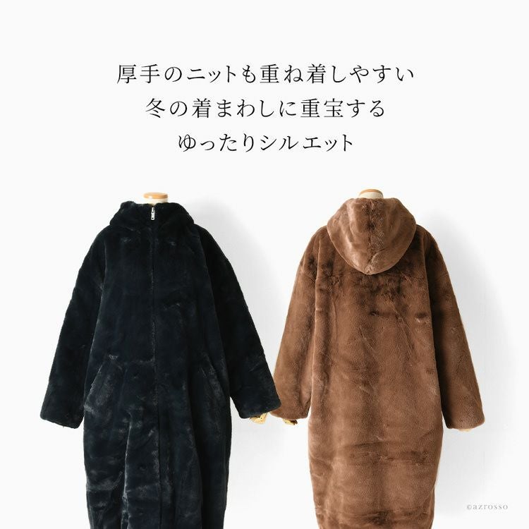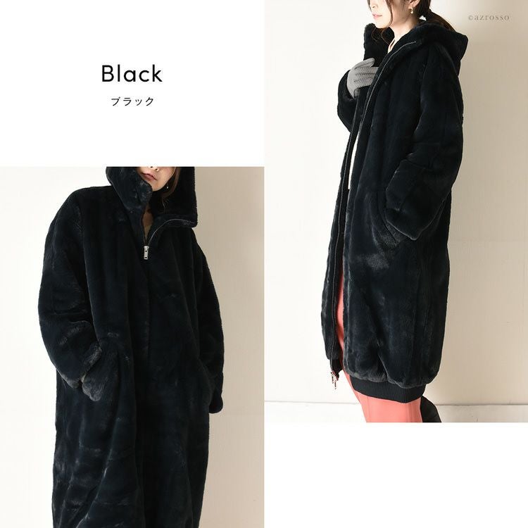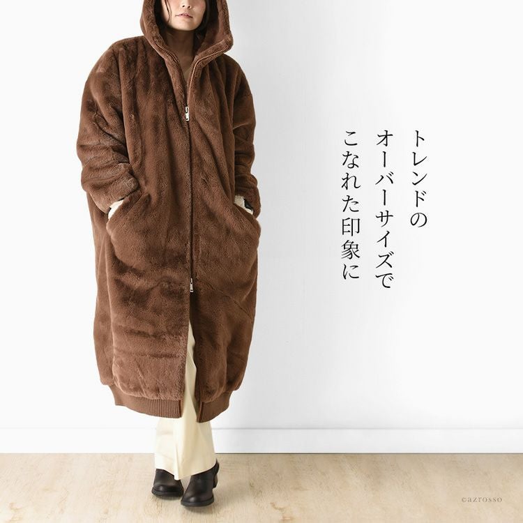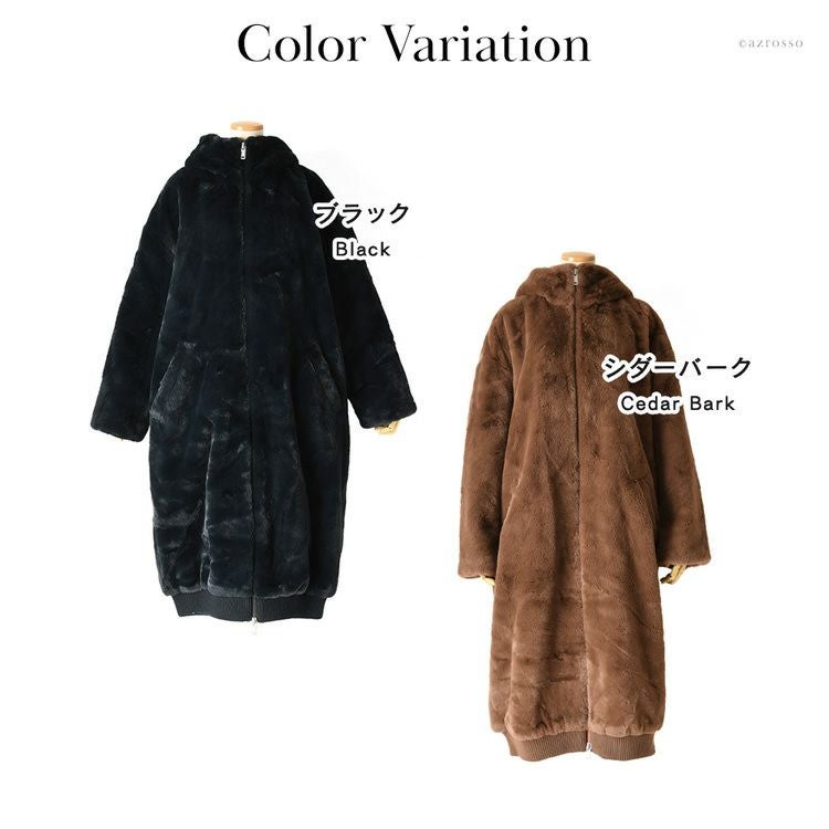 ファー コート ロング アウター レディース ロングコート フード フェイクファー 超 ロング丈 オーバーサイズ ダブルジップ 黒 ブラック ブラウン 茶色 ふわふわ 大きめ ファーコート