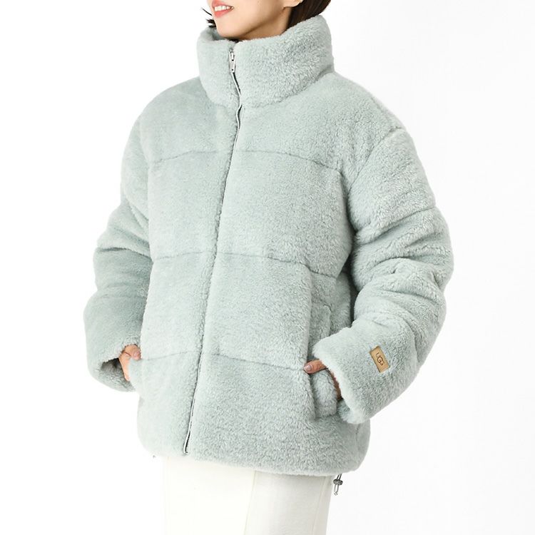 ugg アウター レディース ボア ブルゾン 軽い 暖かい ミドル丈 グレー もこもこ ブランド Emmalyn UGG fluff Puffer Jacket エマリン アグ ジャケット