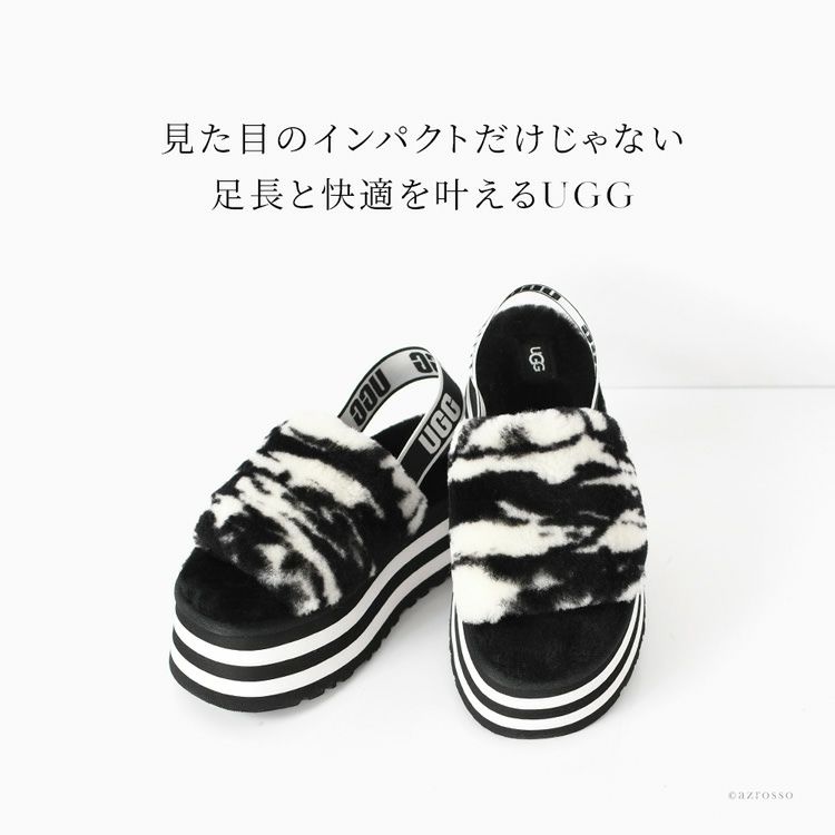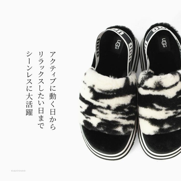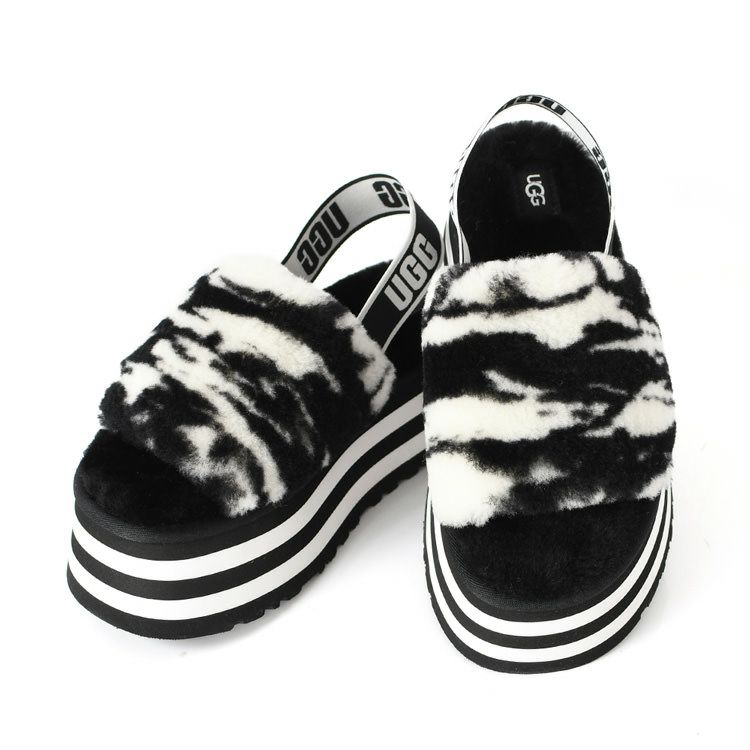22.5cm-26cm│UGG Disco Marble Slide サンダル 厚底 アグ ファーサンダル フラッフ バックストラップ 正規品 1122032 マーブル模様