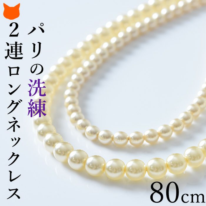 フランス製 2連パール ロングネックレス 真珠 80cm