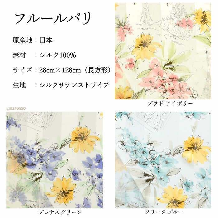 フルールパリ 横浜スカーフ 日本製 シルクスカーフ 大判 横浜スカーフ 長方形 クリーム ベージュ ブルー グリーン