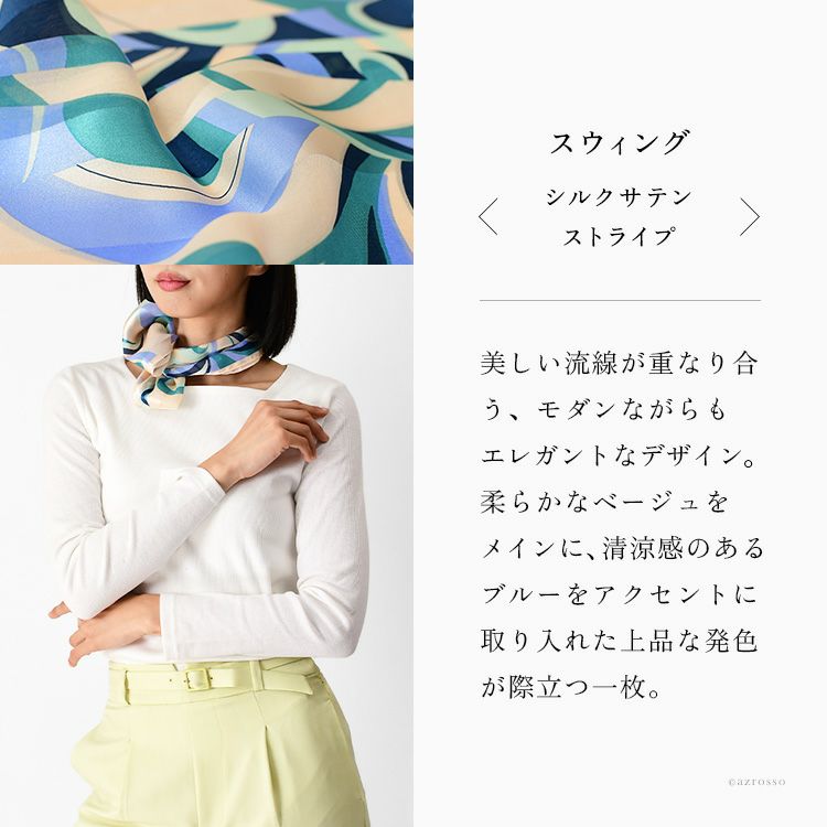 美しい流線が重なり合う、モダンながらもエレガントな幾何学柄スカーフ「スウィング」。