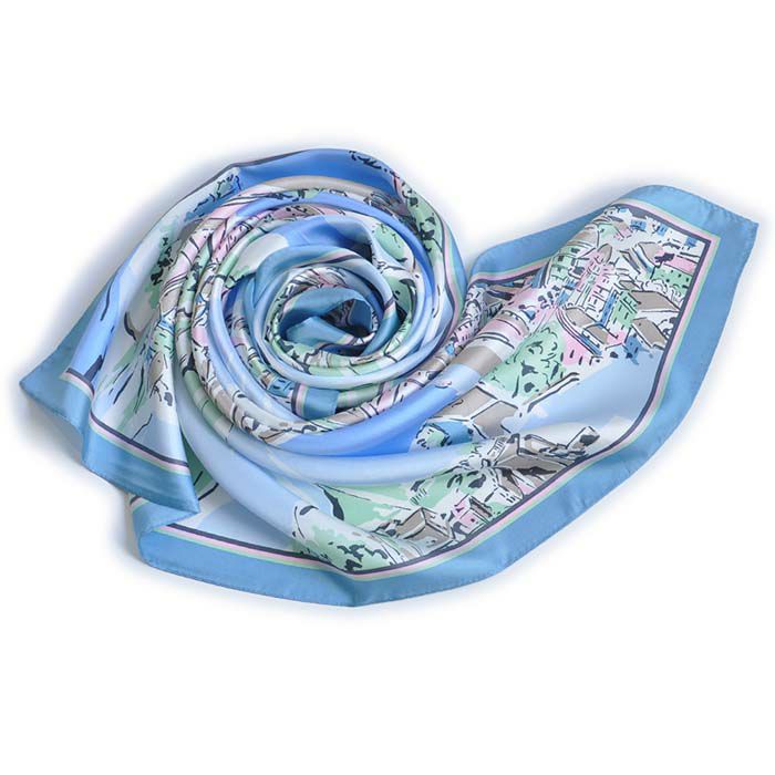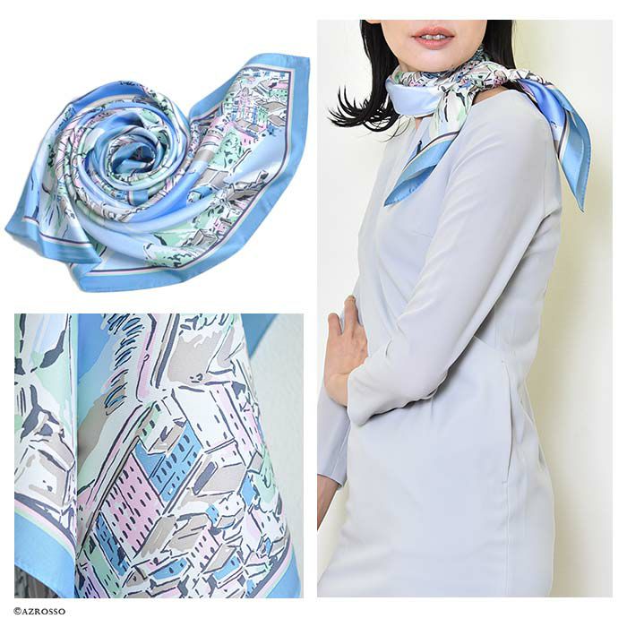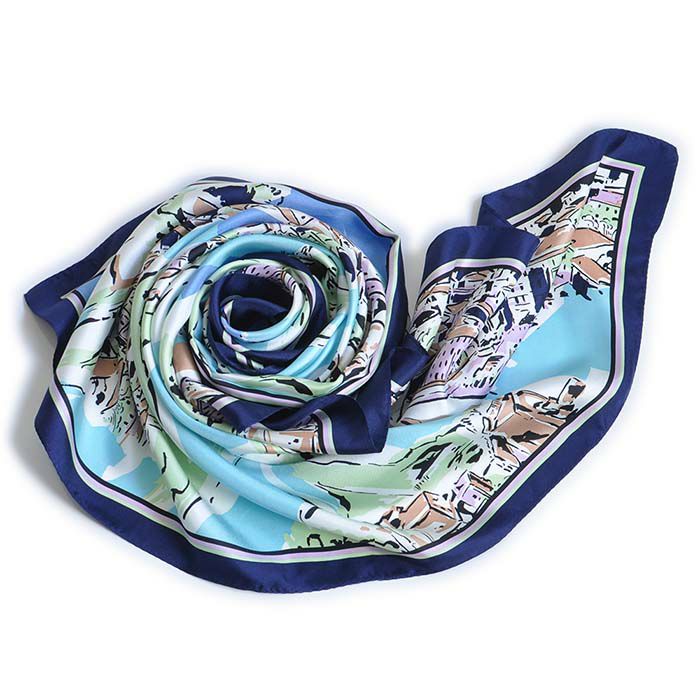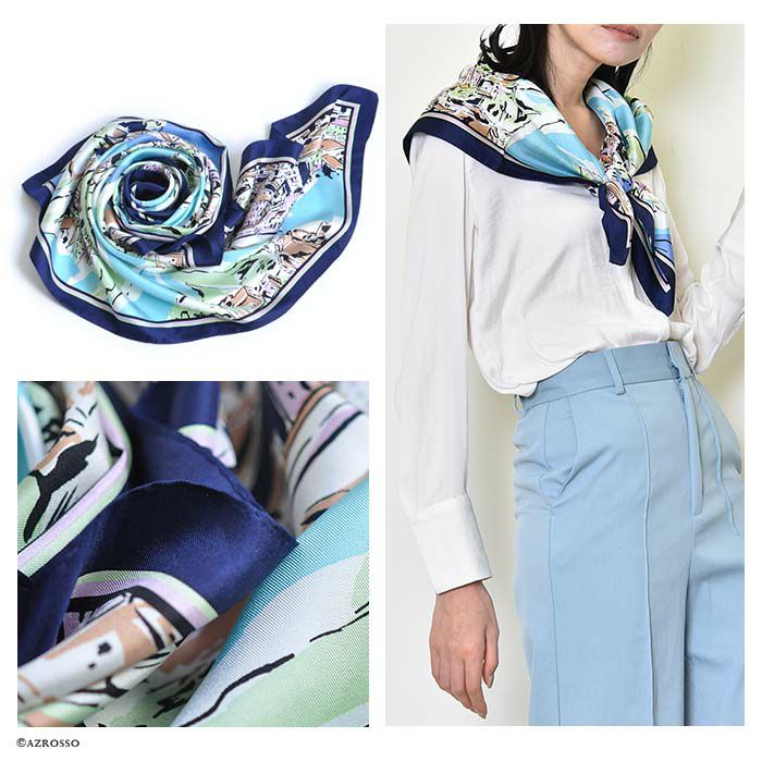 横浜スカーフ アンコーナ 90cm シルクツイル マリン柄 正方形 大判 シルク100% スーツ ジャケット ビジネス パーティ 日本製