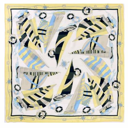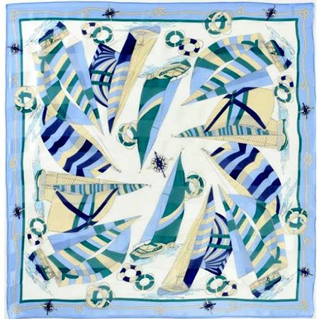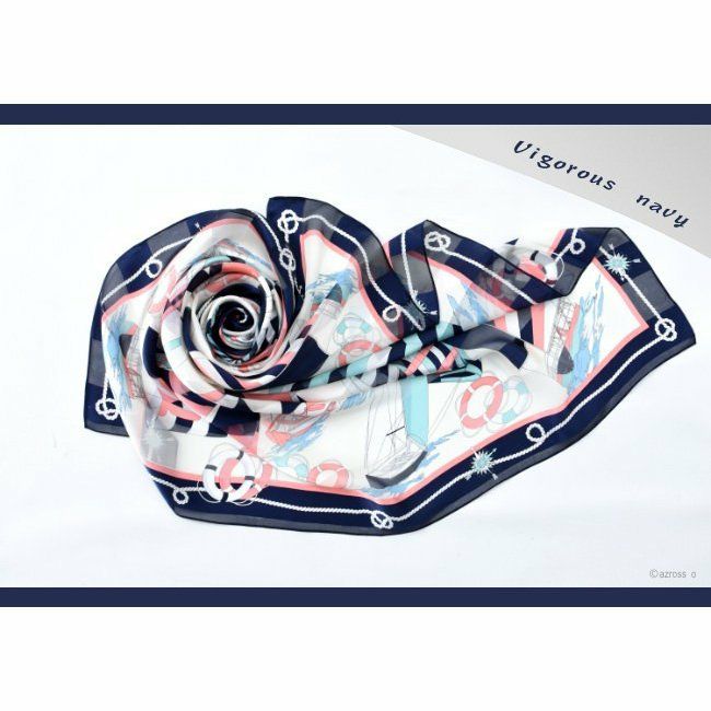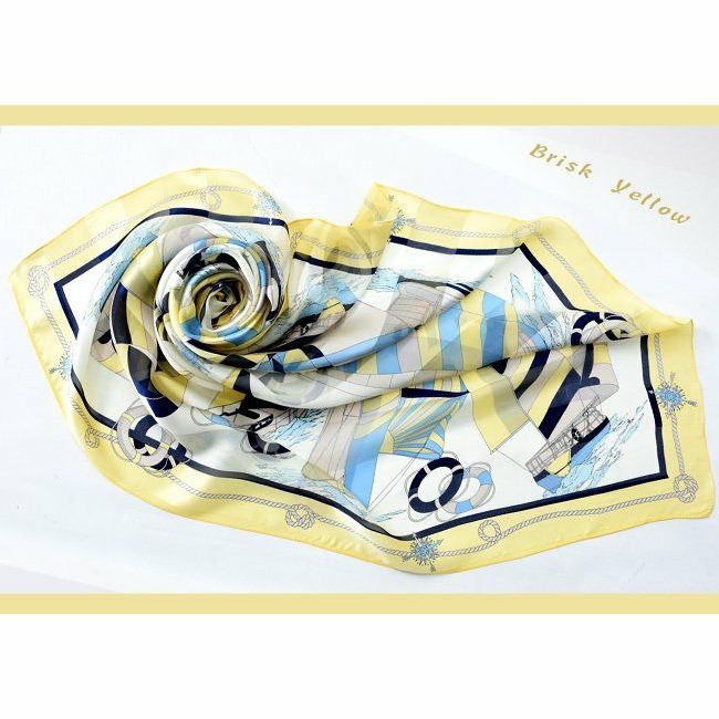 【継続新作】ヨット シルク100% サテン 横浜スカーフ 日本製 88×88 正方形 大判 マリン柄 春夏